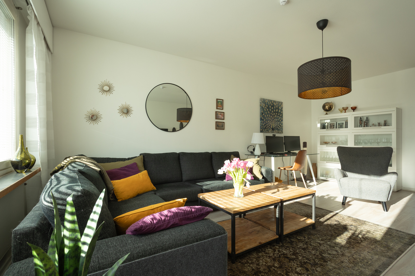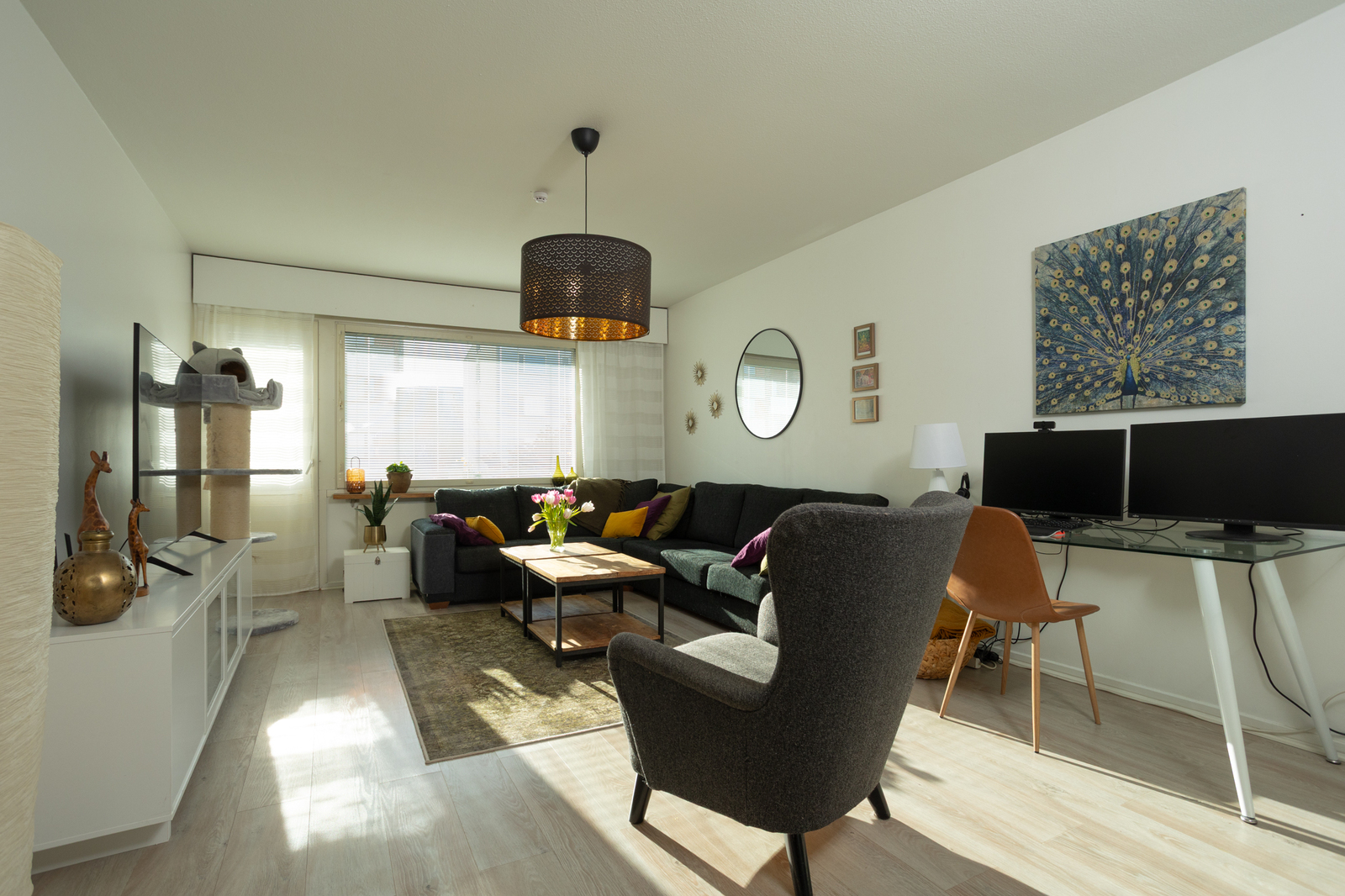 Asunnossa on tilava olohuone sekä runsaasti säilytystilaa, mikä tekee arjesta sujuvaa.