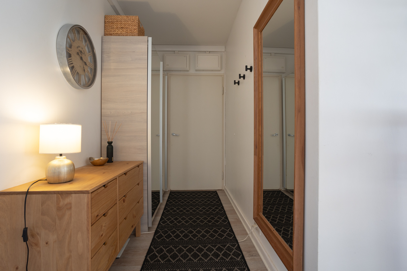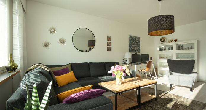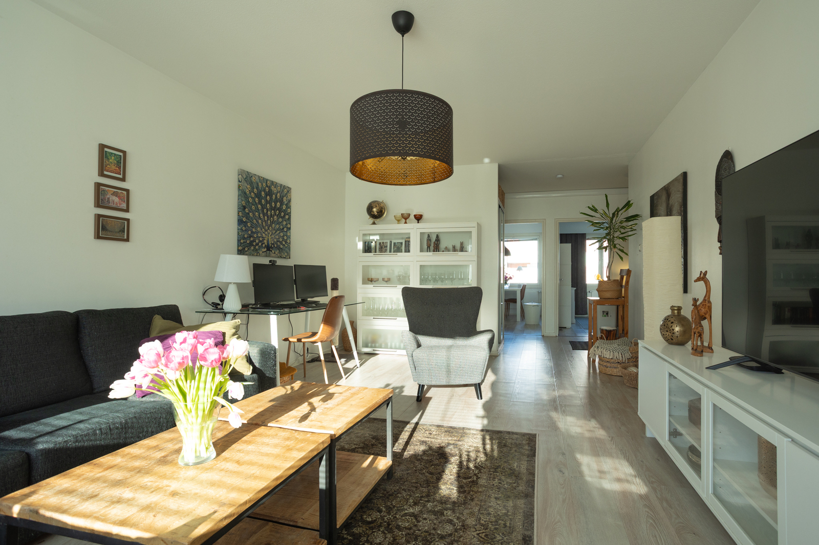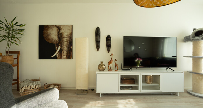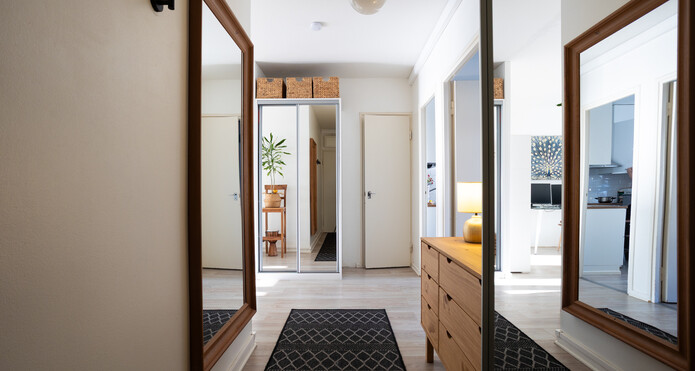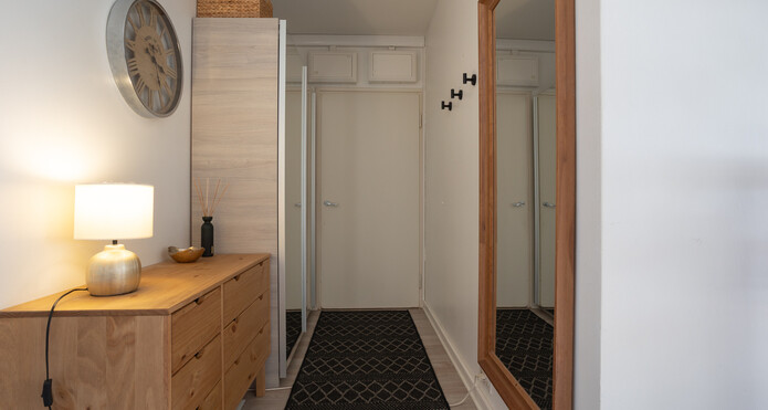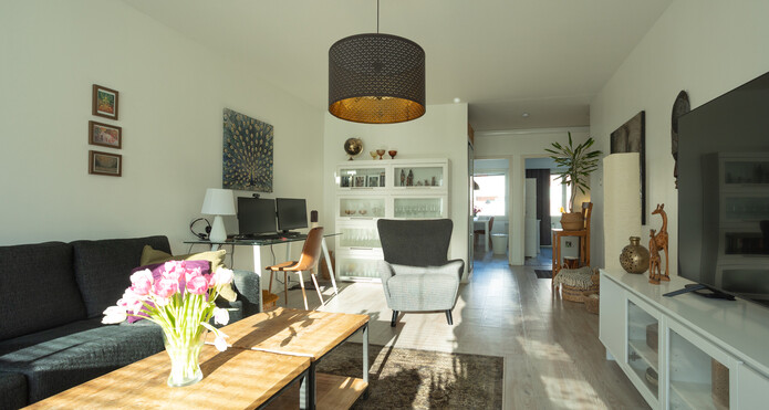 Bostaden har ett rymligt vardagsrum samt gott om förvaringsutrymme, vilket gör vardagen smidigare.