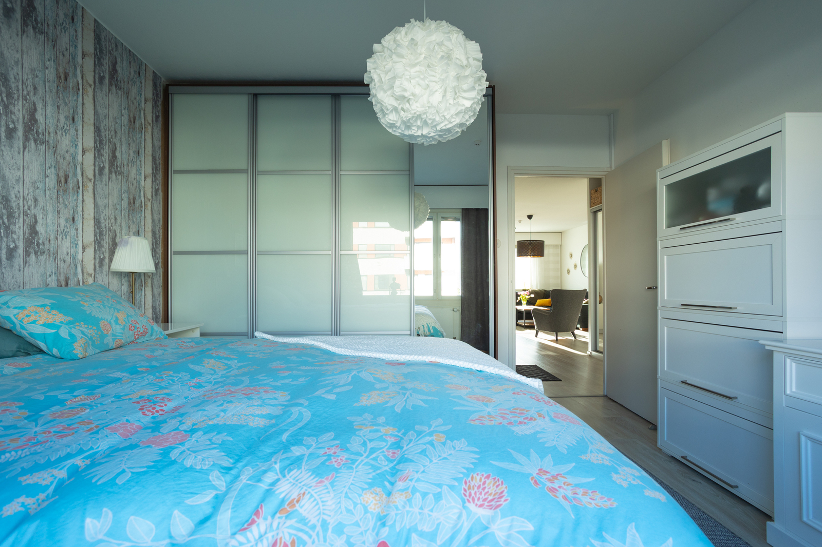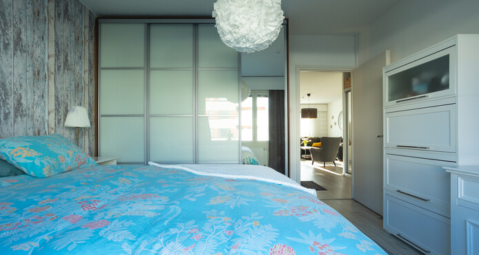 Makuuhuoneessa liukuovikaapisto