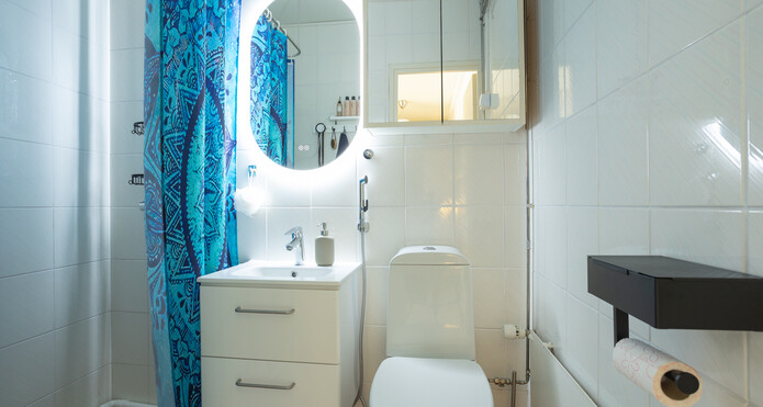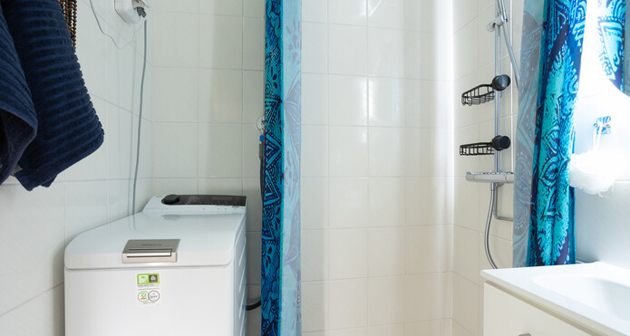 Utrustning: Uttag för tvättmaskin, Dusch, Spegelskåp, Spegel -