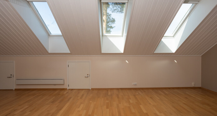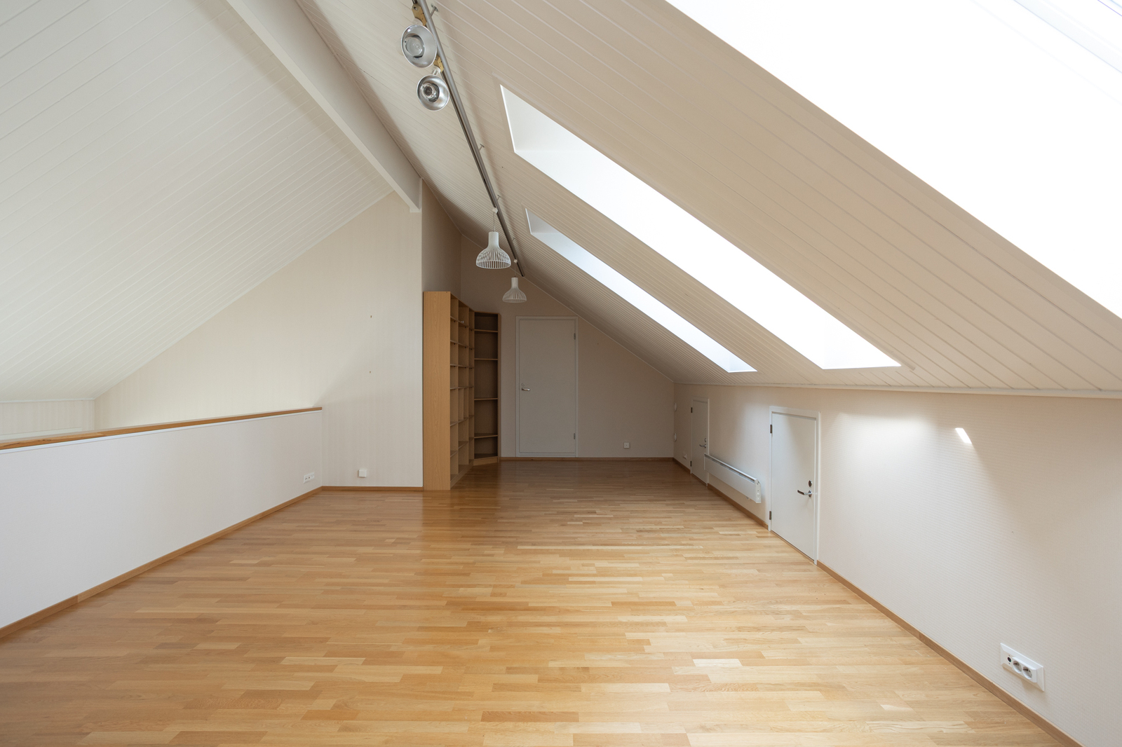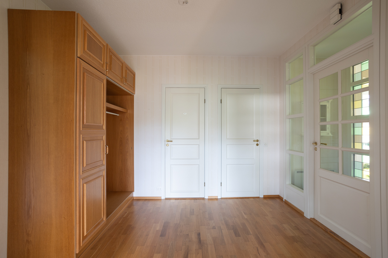 Det finns totalt fyra sovrum. Ett av dem ligger i husets så kallade andra våning i anslutning till ateljé-/sällskapsutrymmet. Detta skapar en egen, lugn plats exempelvis för en au pair.