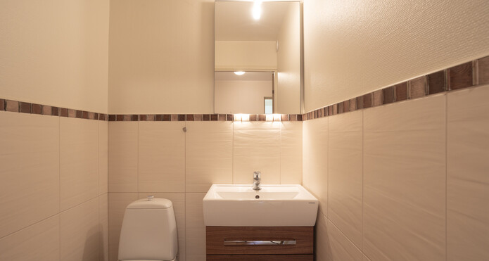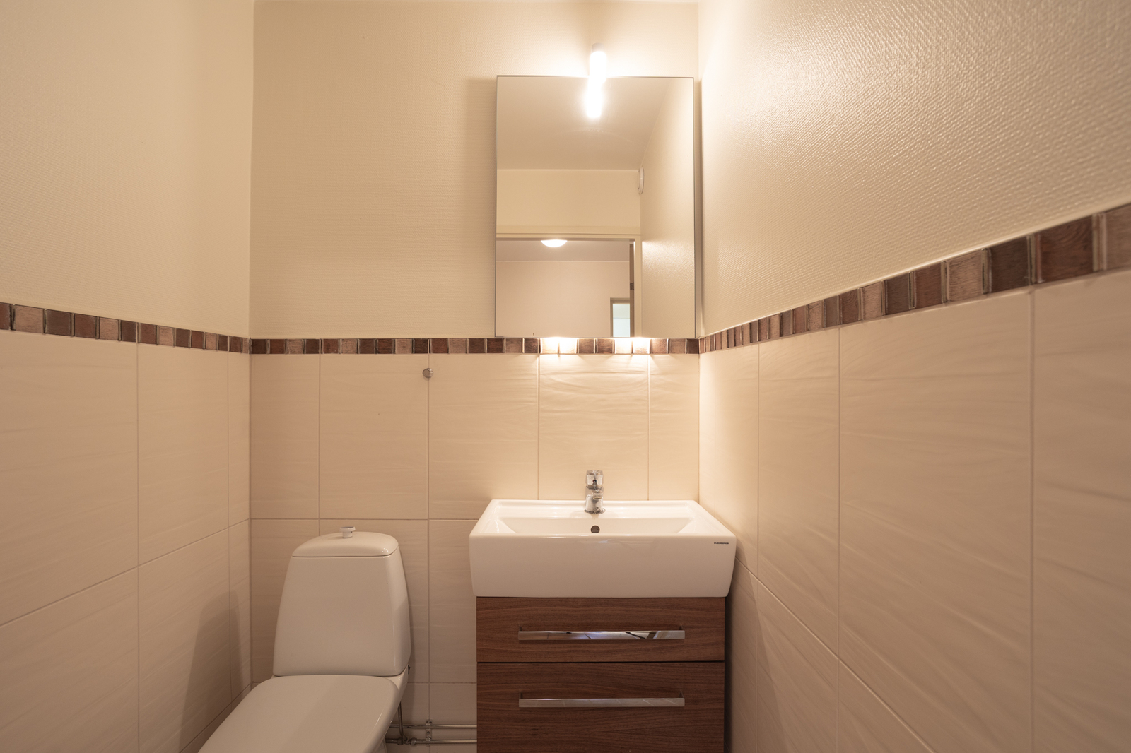 Ensimmäisessä kerroksessa kylpyhuoneen lisäksi on erillinen wc.