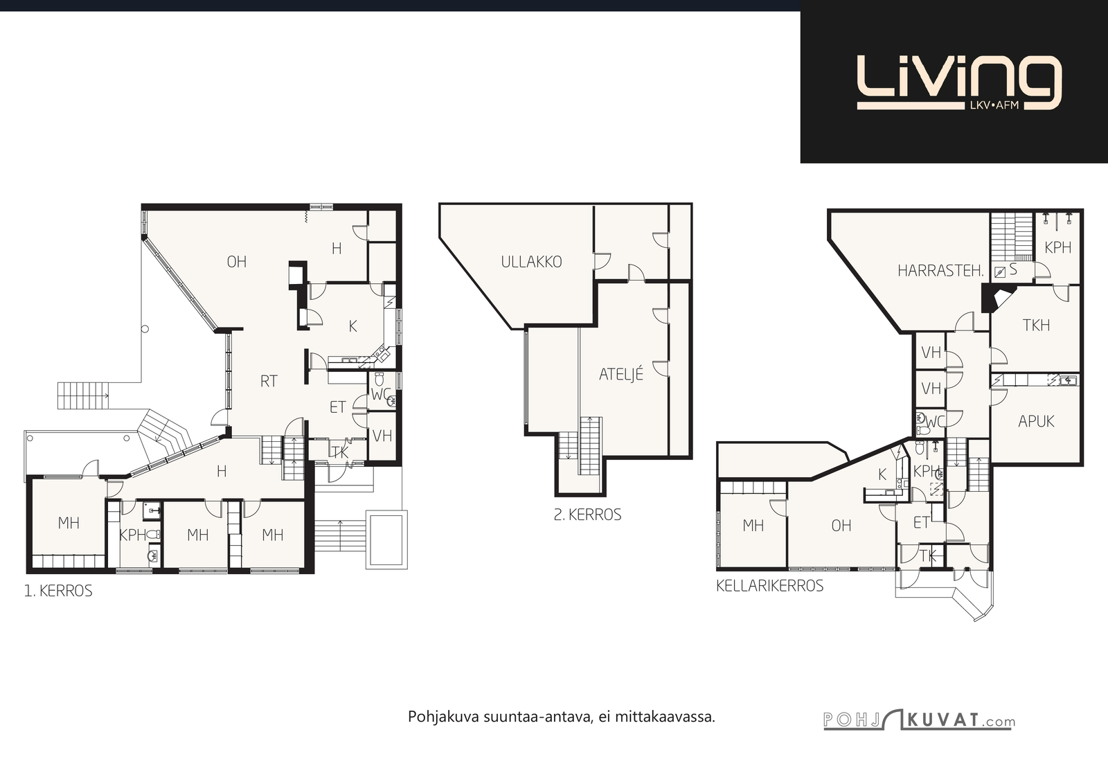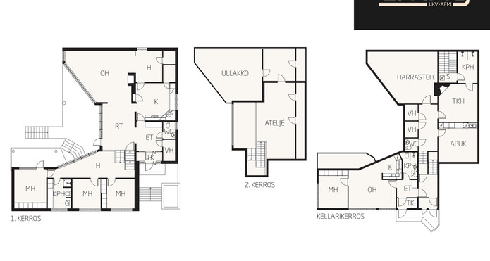 Planritning7h + k + kellarikerros + at + erillinen kaksio