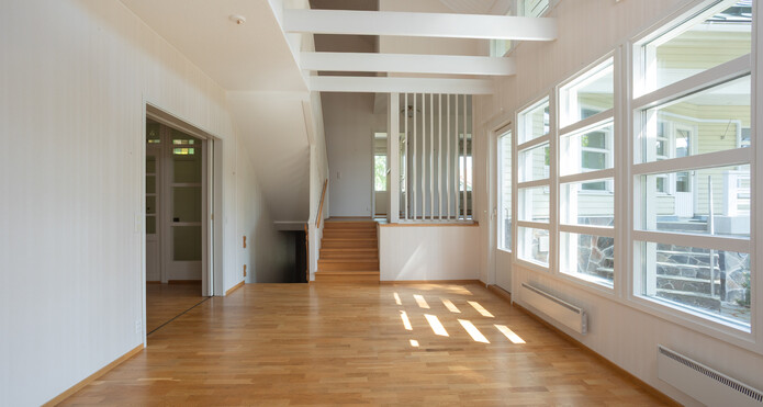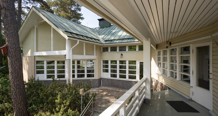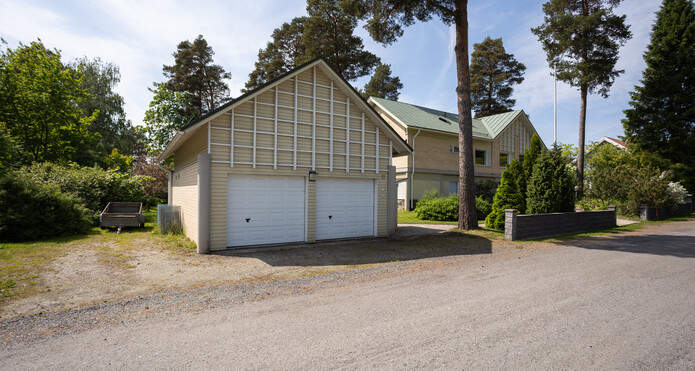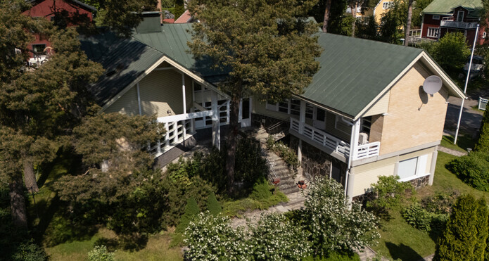 Gjorda renovationerPerusparannuksia vuosina 1986-2008 -pihalaatoitus uusittu, ulkoinen oleskeluterassi rakennettu, ulkoportaiden rst- kaiteet rakennettu. - 2009 I- ja II kerroksen pintakorjaus - tapetointi ja maalaus, II-kerroksen parketti asennettu, sähköpatterit uusittu, keittiön kylmähuone peruskorjattu, II-kerroksen suihkuhuoneen kaapinovet maalattu, kellarin suihkutila peruskorjattu, saunan ovi uusittu, pikku wc uusittu - 2010 talojen julkisivut maalattu - 2012 katon tikkaat tehty - 2017 keittiö uusittu, erillinen huoneisto peruskorjattu, peltikatot uusittu (10 vuoden takuu), vesirännit ja syöksytorvet uusittu ja kadunpuoleinen kiviaita tehty - 2020 pääportaan oven uusinta - 2023 ilmalämpöpumppu