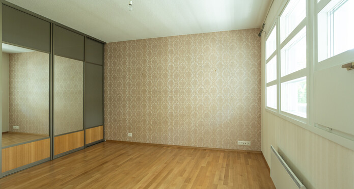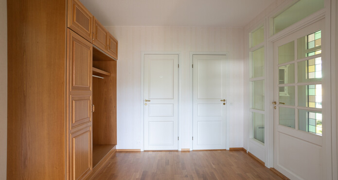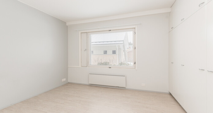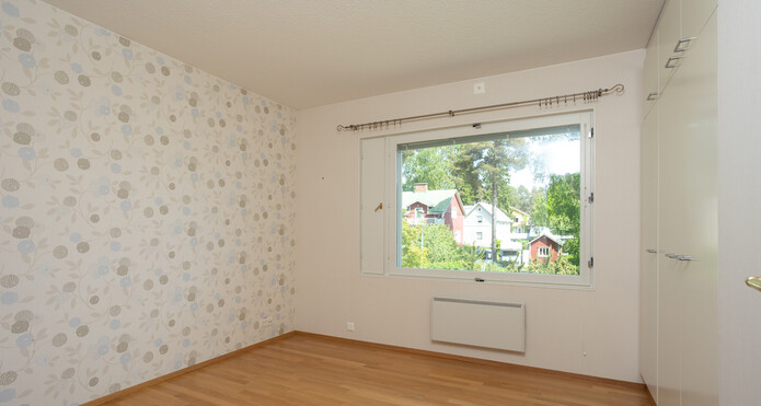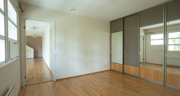 Kahdessa makuuhuoneessa vaatekomerot ja isoimmassa makuuhuoneessa liukuovikaapisto. -