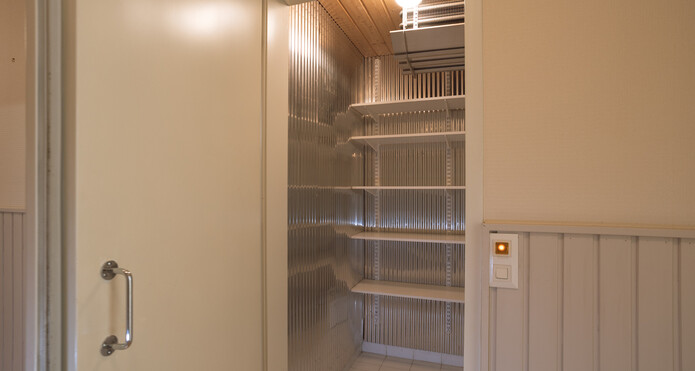 I källarvåningen finns ett stort grovkök där man smidigt kan koka sylt för vintern och sköta tvätten. I denna våning finns även husets andra kylrum och ett separat WC.
