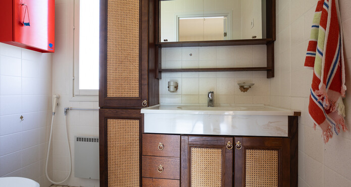 På första våningen finns, förutom badrummet, även ett separat WC.