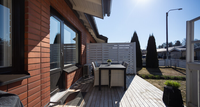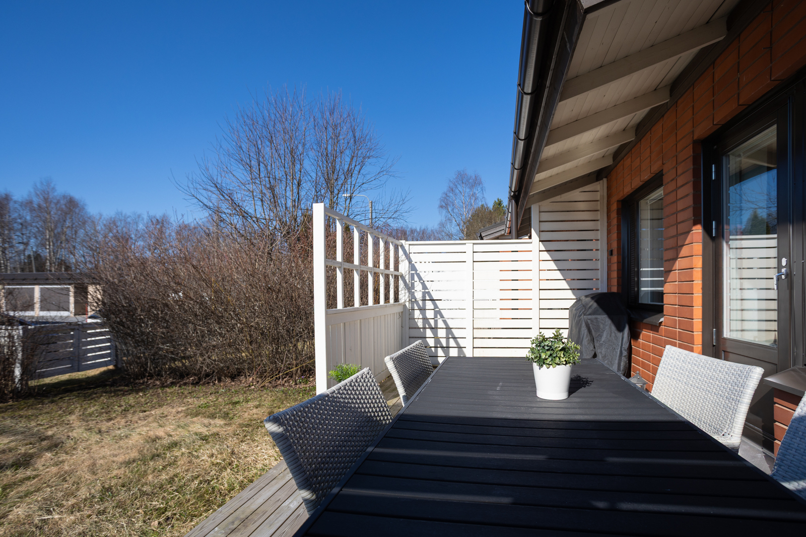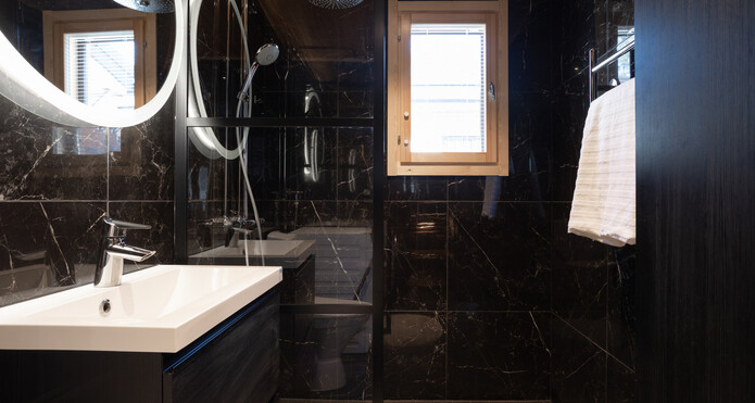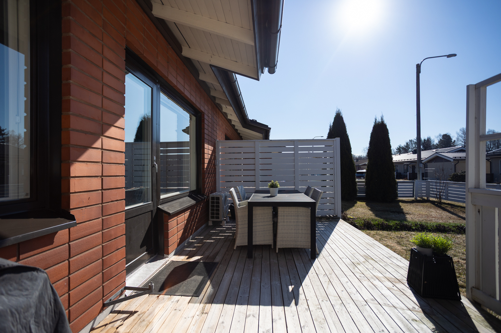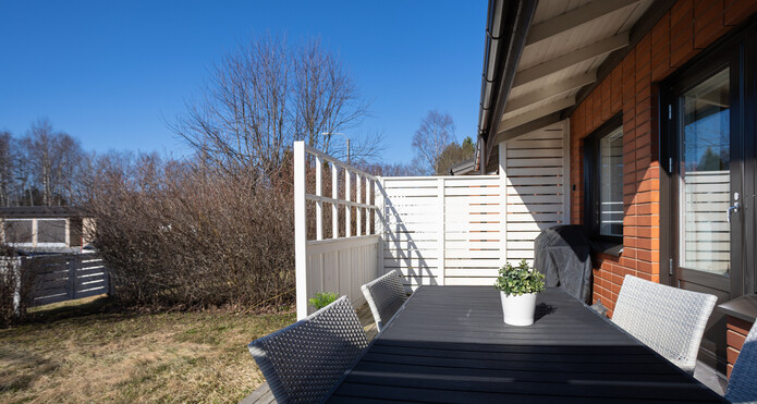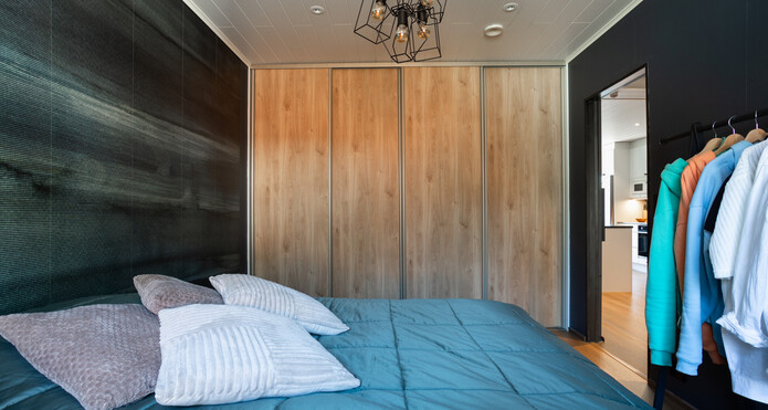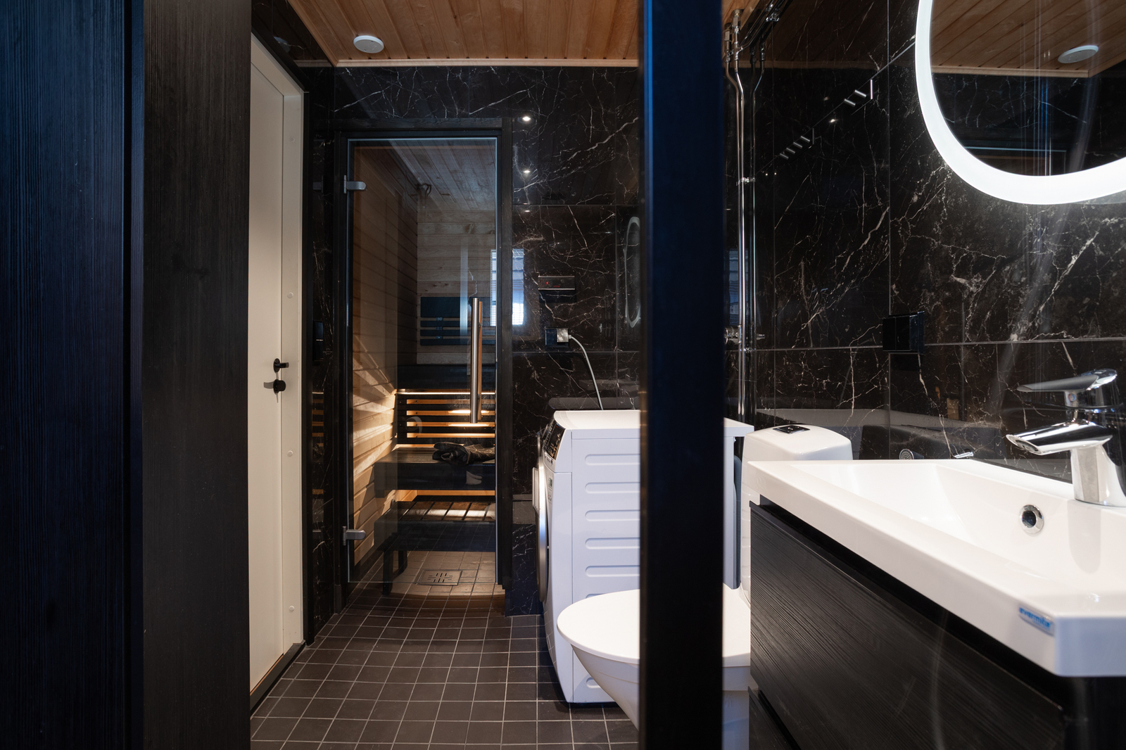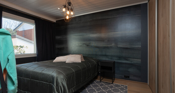 Huoneistossa lattiapinnat ovat kauttaaltaan laadukasta vinyylilankkua sisääntuloaulan laatoitus tuo käytännöllisyyttä arkeen. Makuuhuoneessa arjen luksusta luo näyttävä liukuovi sekä runsaat säilytystilat koko seinän levyisten kaapistojen takana. Moderni kylpyhuone ja sauna viimeistelevät kokonaisuuden. Huoneistossa ilmalämpöpumppu.