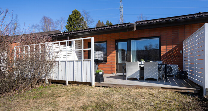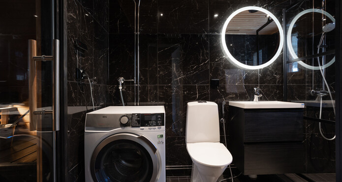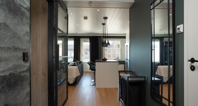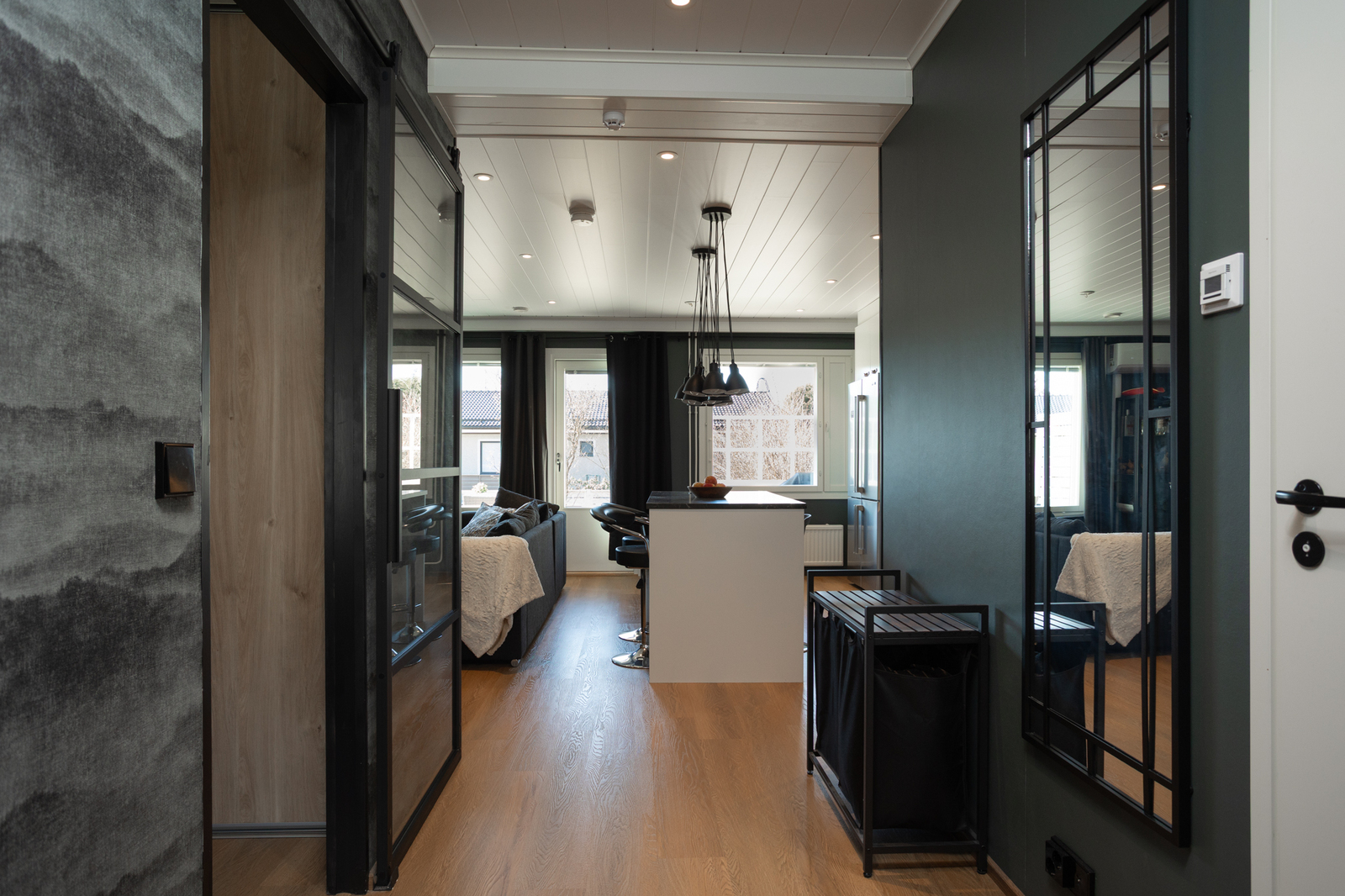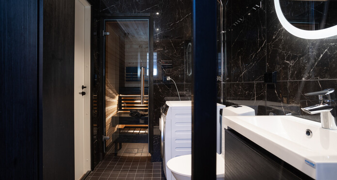 Lägenhetens golvytor består helt och hållet av högklassiga vinylplankor - entréaulans golv är belagt med kakel vilket är praktiskt i vardagen. I sovrummet finns en snygg skjutdörr som tillför lite vardagslyx samt gott om förvaringsutrymme bakom skåpen som sträcker sig längs hela väggen. Ett modernt badrum och bastu sätter pricken över i åt helheten. Det finns luftvärmepump i lägenheten.