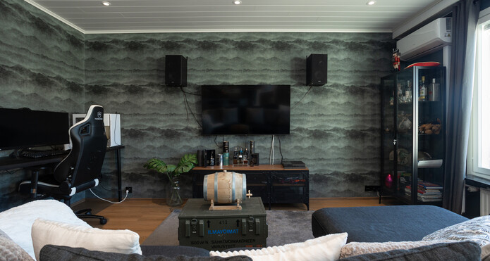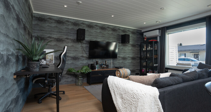 Beskrivning av vardagsrummetVäggmaterial: Tapet