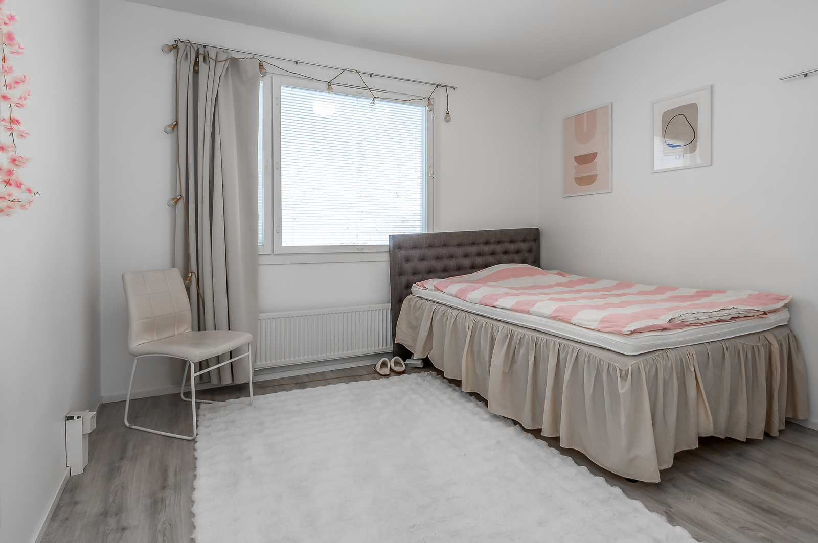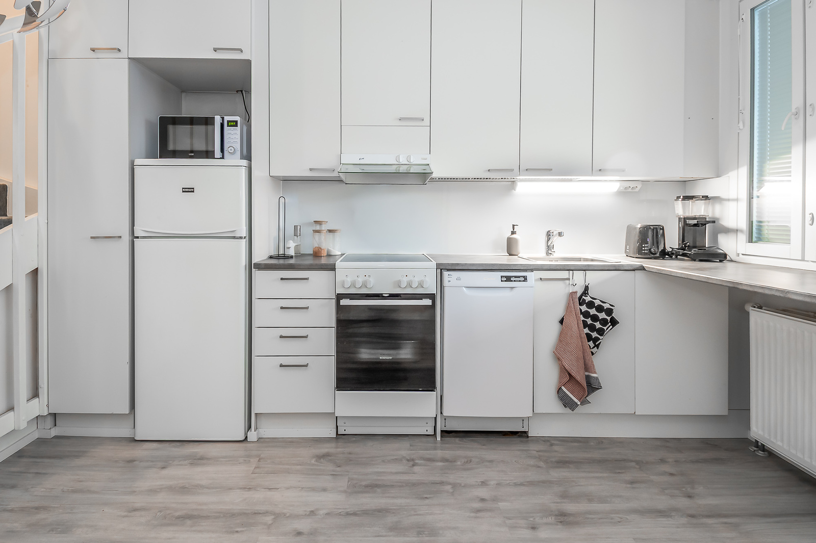Laminaattilattiat. Seinät maalatut.