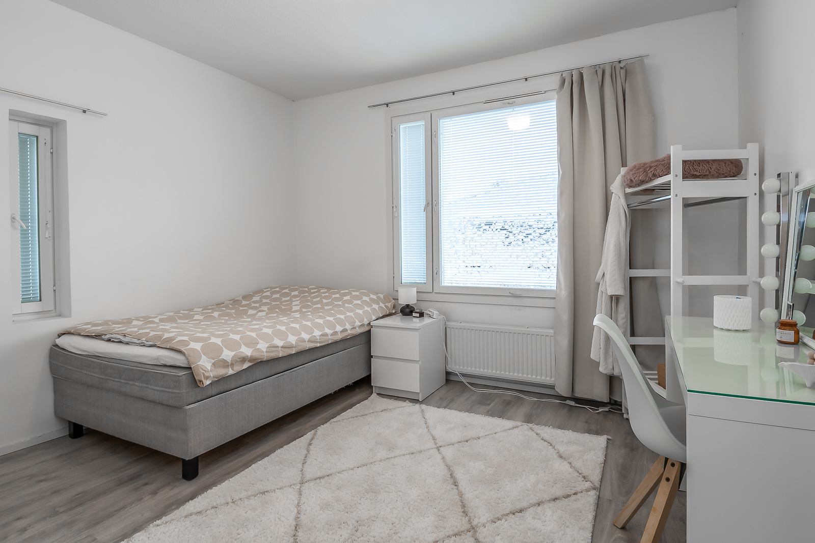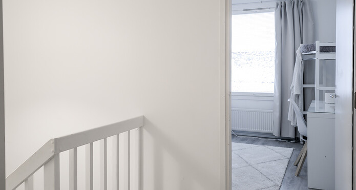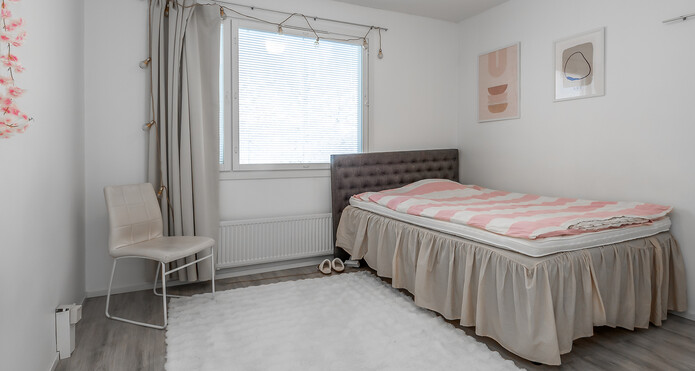 Makuuhuoneita on kaksi ja ne sijaitsevat asunnon 2. kerroksessa, omassa rauhassaan.