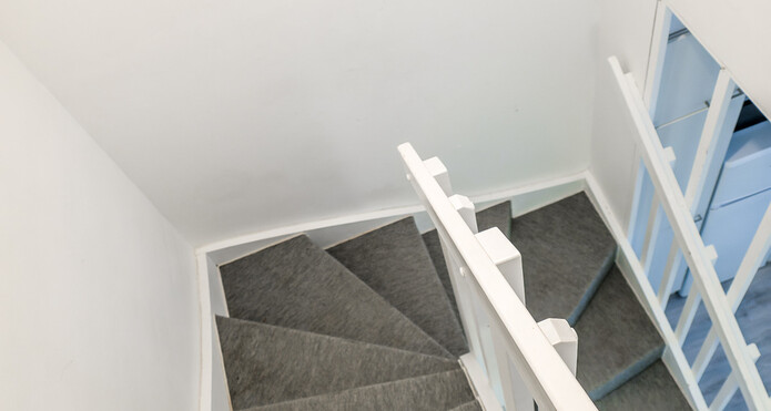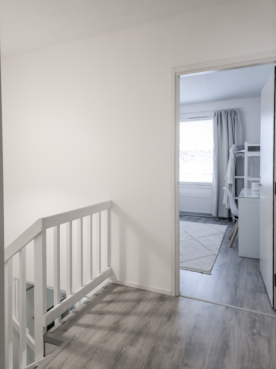 Det finns två sovrum och de befinner sig i lugn och ro på bostadens andra våning.