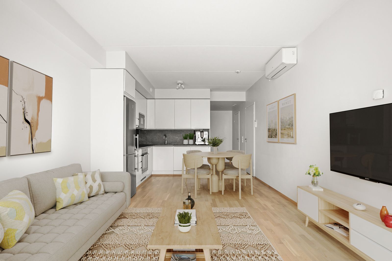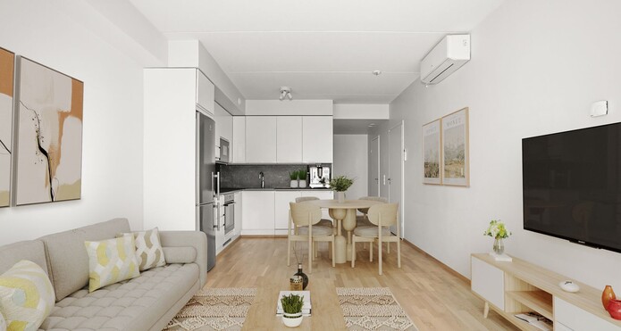Husbolaget är byggt år 2020 och befinner sig på egen tomt. Bostaden ger ett modernt helhetsintryck och den öppna planlösningen gör att lägenheten är välfungerande och ljus. Den stora balkongen öppnar sig i västlig riktning och erbjuder fantastisk utsikt och kvällssol.
