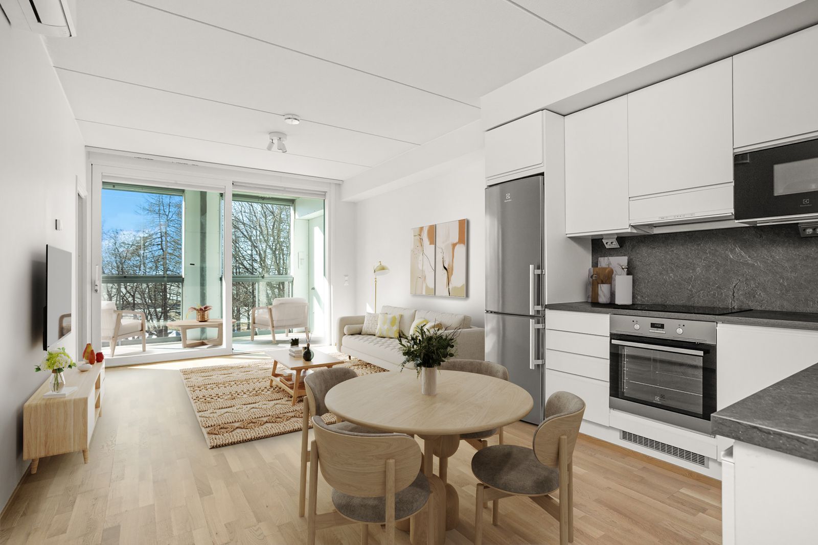 Kodin läheisyydessä kulkevat upeat ulkoilureitit aivan kotiovelta. Mahdollisuus ostaa autohallipaikka hintaan 22 000 euroa.