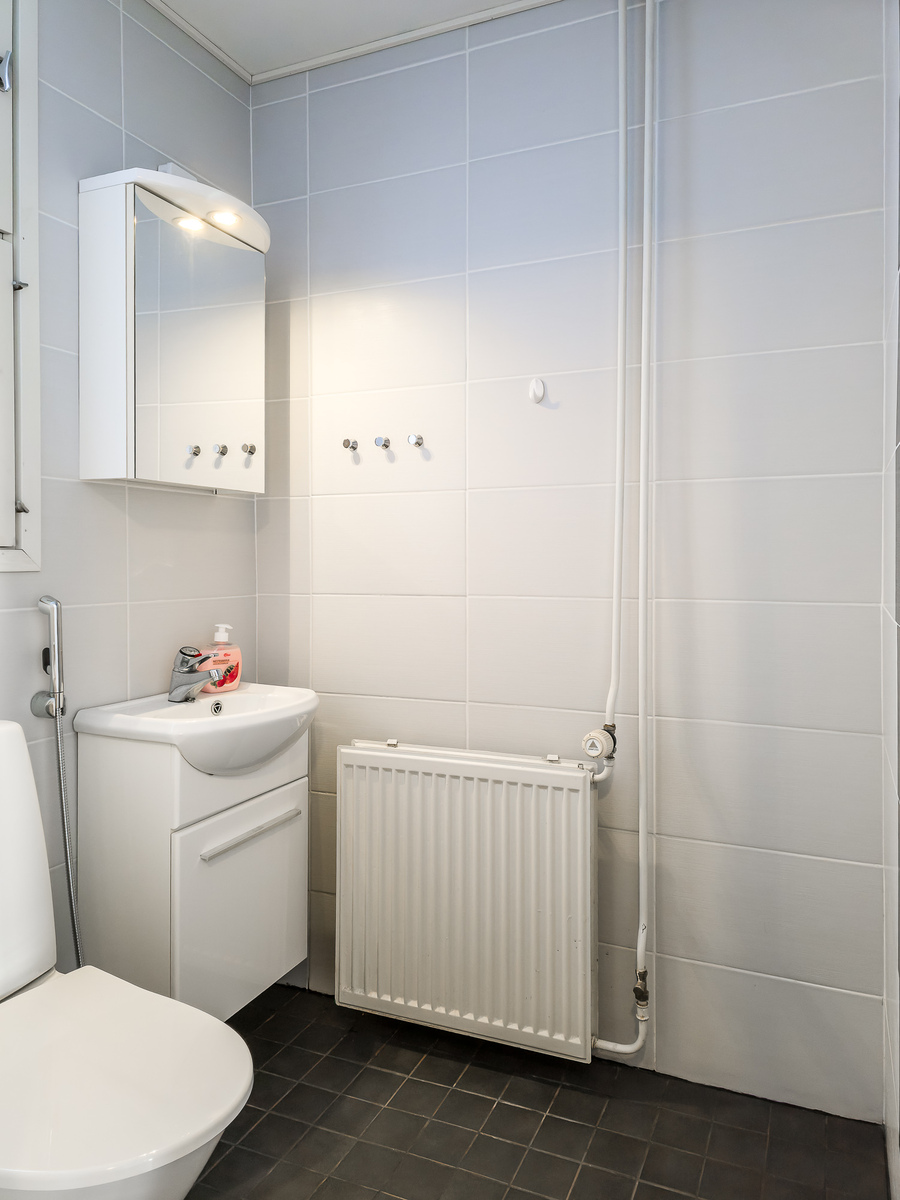 Erillinen, tilava wc alakerrassa, toinen wc yläkerrassa kylpyhuoneen ja saunan yhteydessä. -