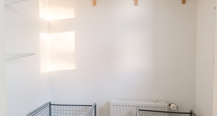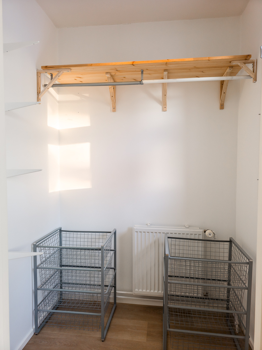 Toisessa makuuhuoneen yhteydessä vaatehuone.