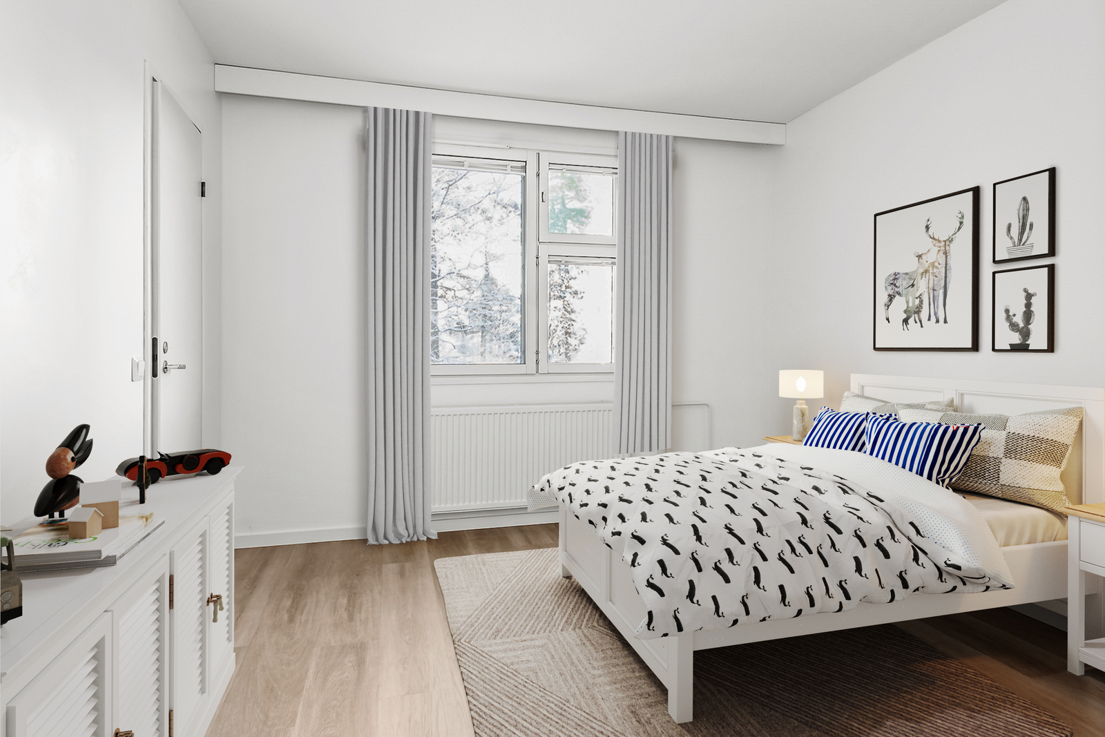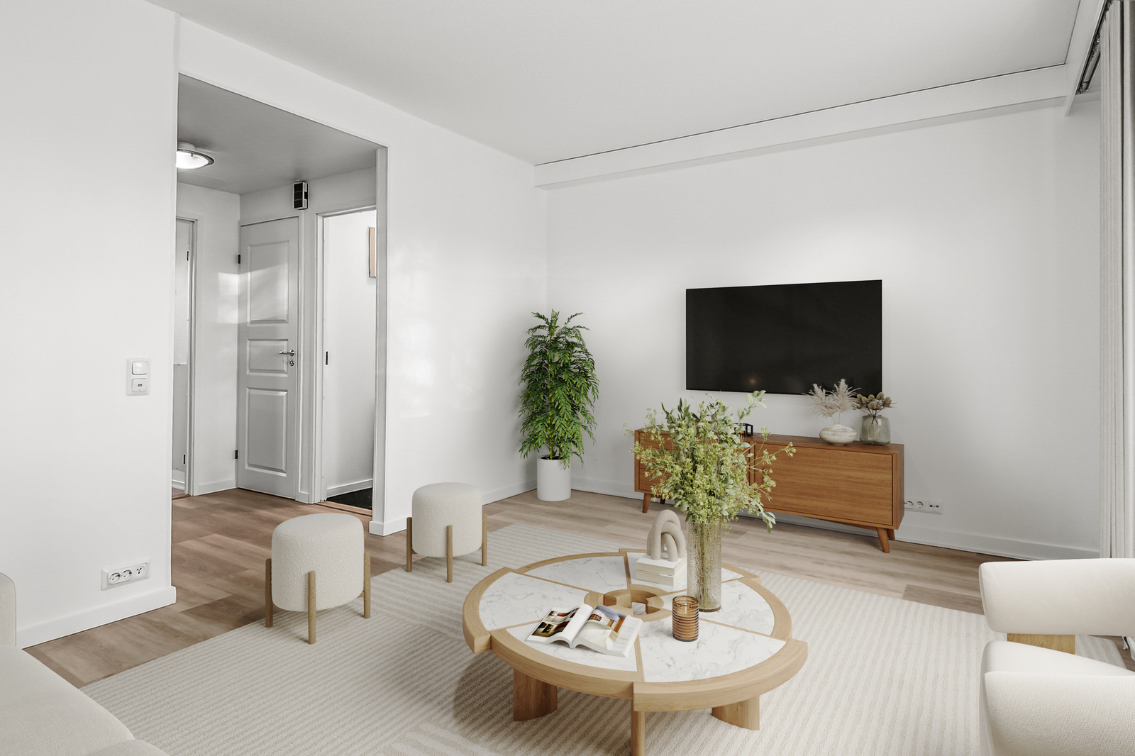 Olohuoneen kuvausSeinämateriaalit: maalattu