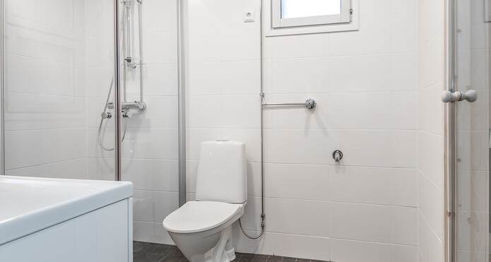 Varusteet: pesukoneliitäntä, suihku, peili