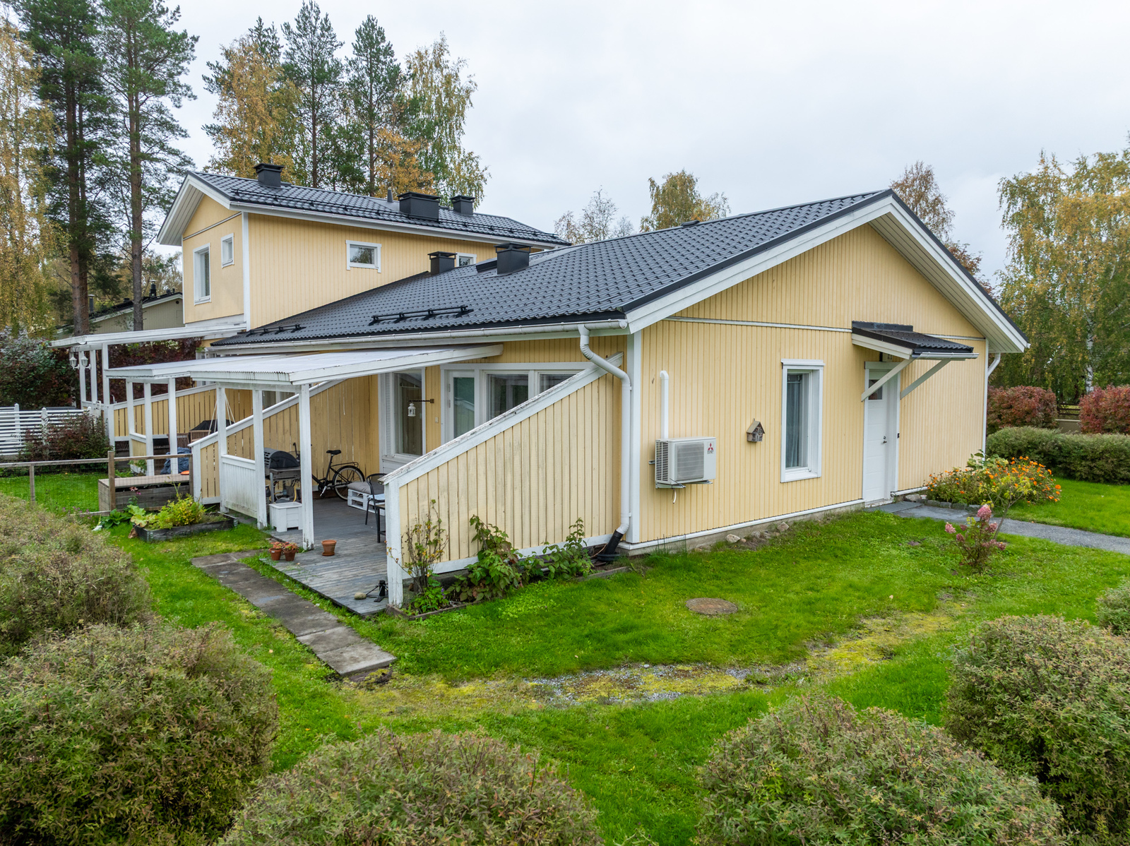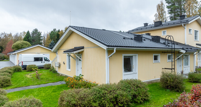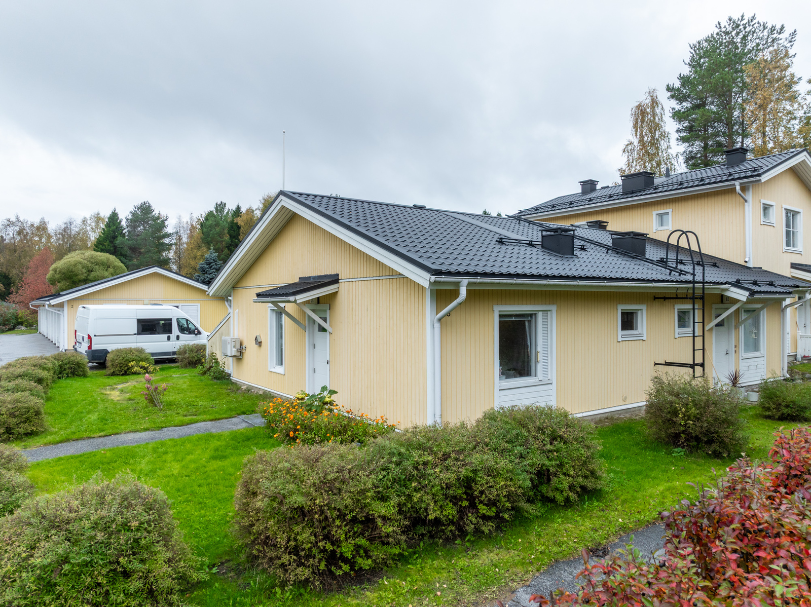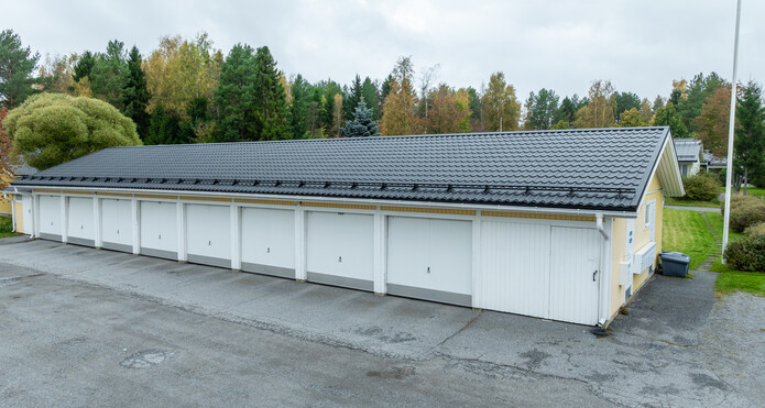 Tilat ja varusteluJokaiseen huoneistoon kuuluu autotalli ja varasto. Yhtiössä myös 5 autopaikkaa, pyörä- ja puutarhavarastot, lapsille leikkipaikka ja keinut. Jätteenkeräyspaikka on katettu ja lukittu. Yhtiöllä 388m2 rakennusoikeutta jäljellä.