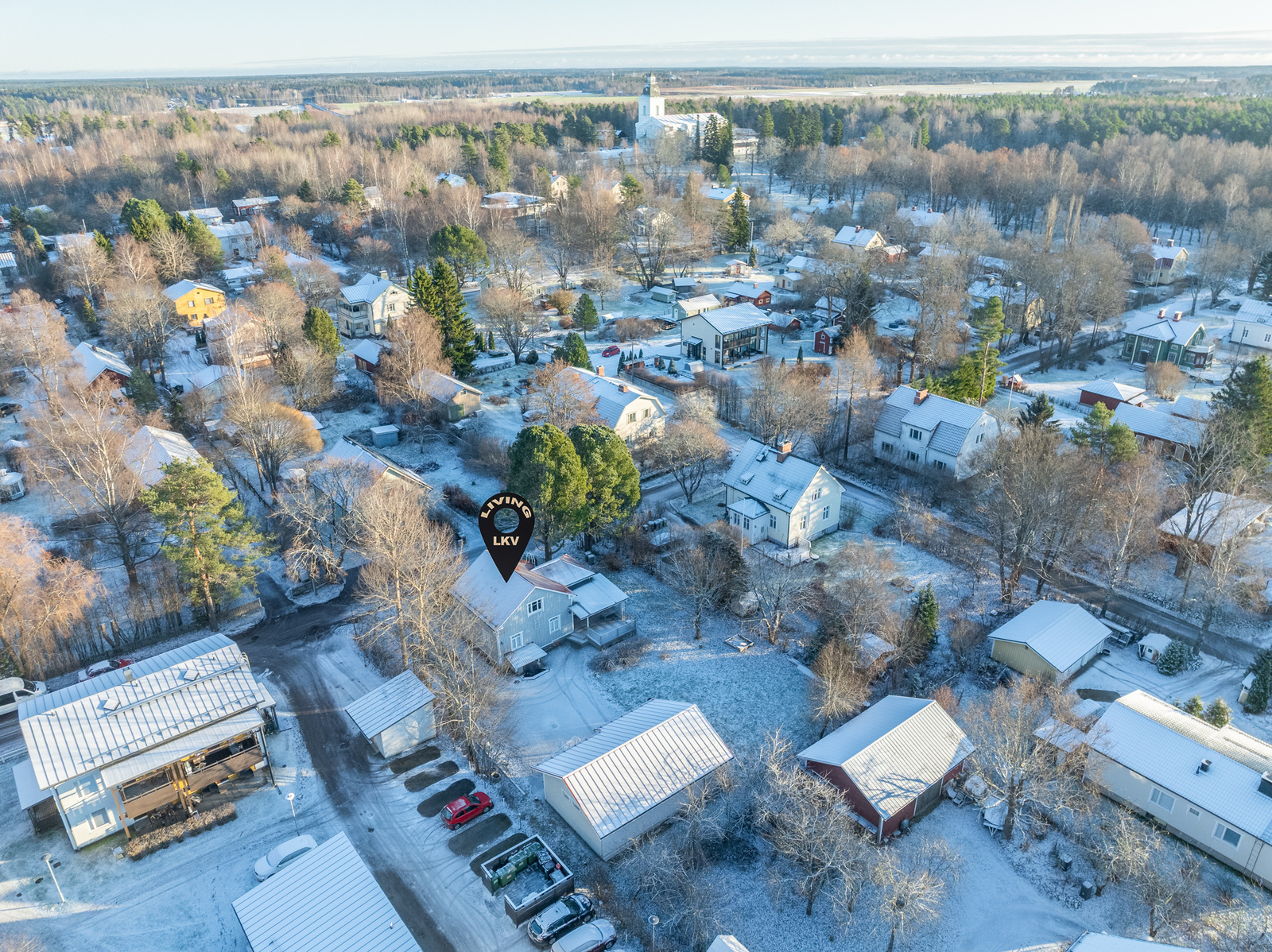 Första boendevåningen omfattar en verkligt rymlig tambur, ett välfungerande kök med Puustellis högklassiga köksinredning, vardagsrum och WC. Övre våningen är ofärdig. Där finns möjlighet till två sovrum, sällskapsutrymme och WC.