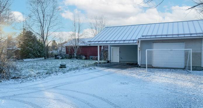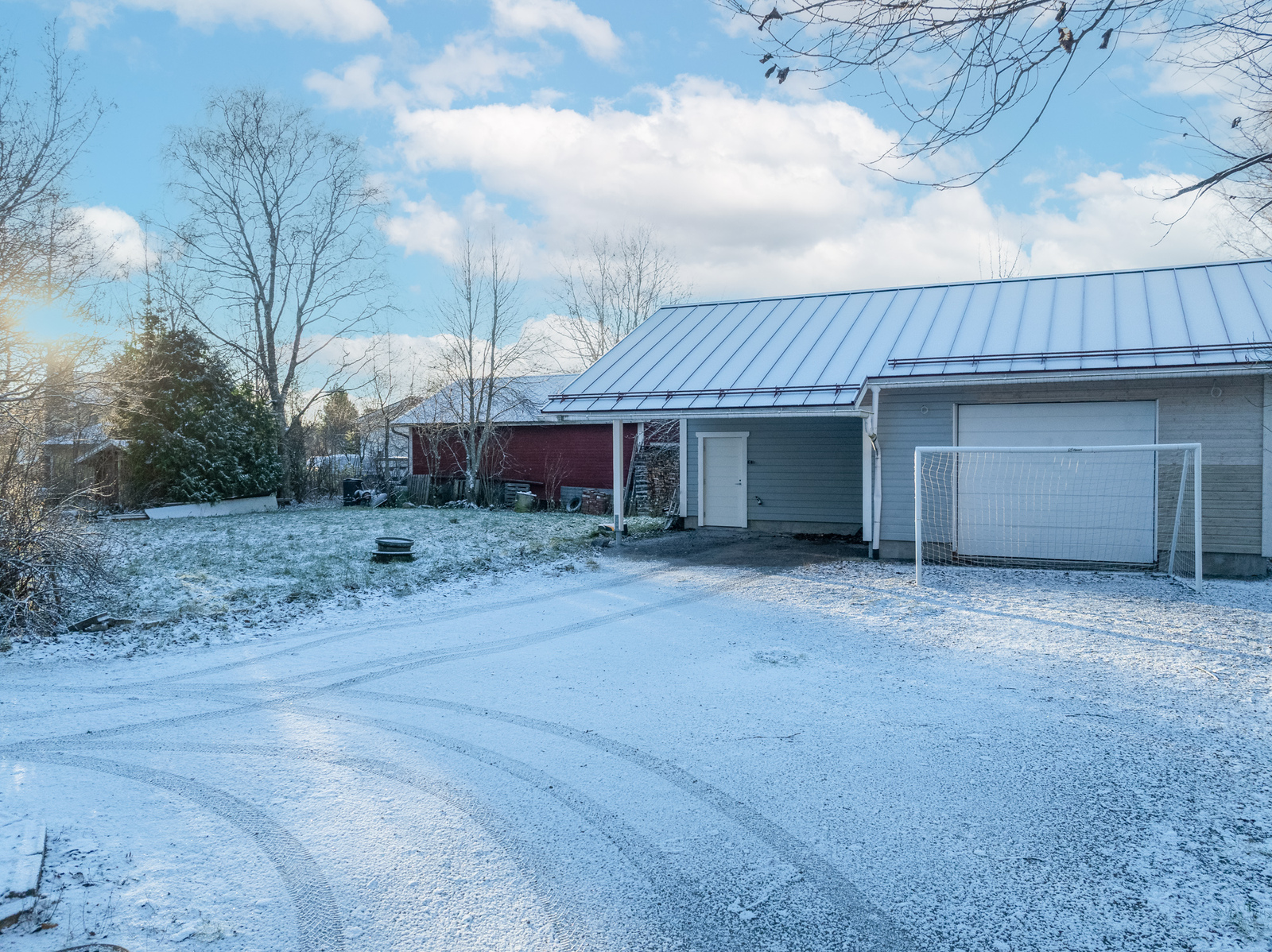 Kauniilla ja suojaisalla puutarhatontilla sijaitsee myös uudehko talousrakennus, joka käsittää autotallin, katoksen ja varaston.