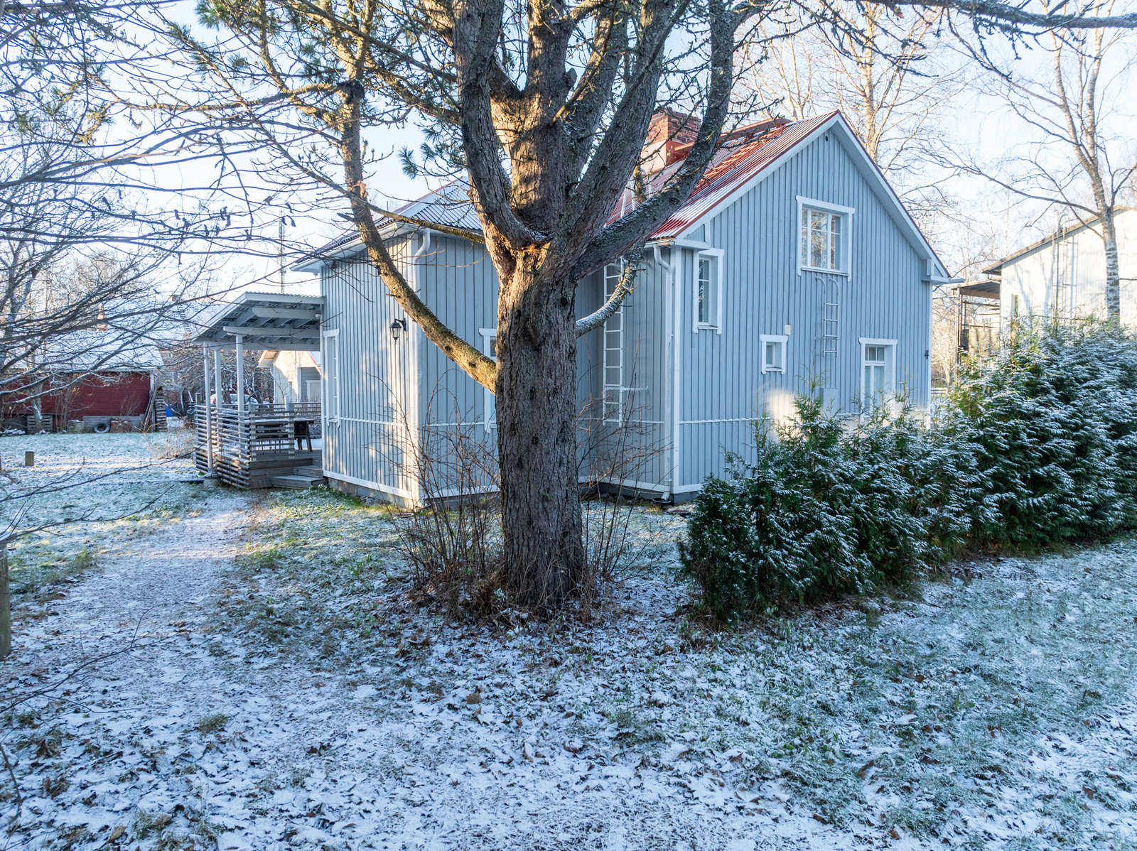 Detta stämningsfyllda, år 1941 byggda stockhus har genomgått en omfattande grundrenovering under åren 2011-2013. De tekniska renoveringarna som utförts är bl.a. fasadbeklädning, tilläggsisolering, socklar, fönster och ytterdörrar, byte av uppvärmningssystem till jordvärme och omfattande inomhusrenovering av första boendevåningen och av källarvåningen. Andra boendevåningen är ofärdig.