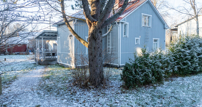 Tämä tunnelmallinen, v. 1941 alun perin rakennettu hirsitalo on peruskorjattu kattavasti v. 2011-2013. Tehtyjä teknisiä remontteja ovat mm. ulkoverhous, lisäeristys, sokkelit, ikkunat ja ulko-ovet, lämmitysmuodon vaihto maalämpöön ja 1. asuinkerroksen sekä kellarikerroksen kattava sisäremontti. 2. asuinkerros on keskeneräinen.