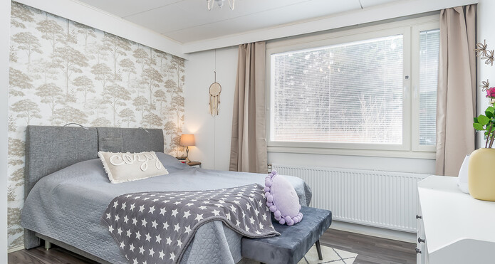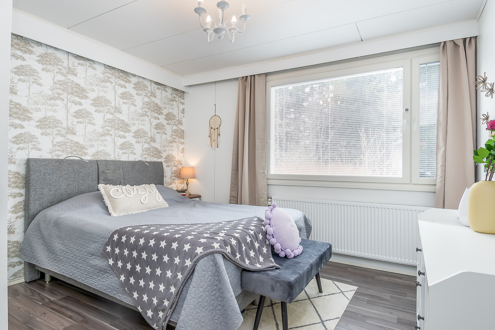 Tämä yksitasoinen koti kattaa kattavasti remontoidut sisätilat, jotka koostuvat neljästä makuuhuoneesta, hyvänkokoisesta olohuoneesta, kylpyhuoneesta, saunasta, erillisestä wc:stä, keittiöstä ja ruokailutilasta. Säilytystilaa tuovat niin vaatehuone kuin kattomuutoksen yhteydessä tehty ullakkotila. Ullakolle on mahdollista saada myös lisää asuintilaa.