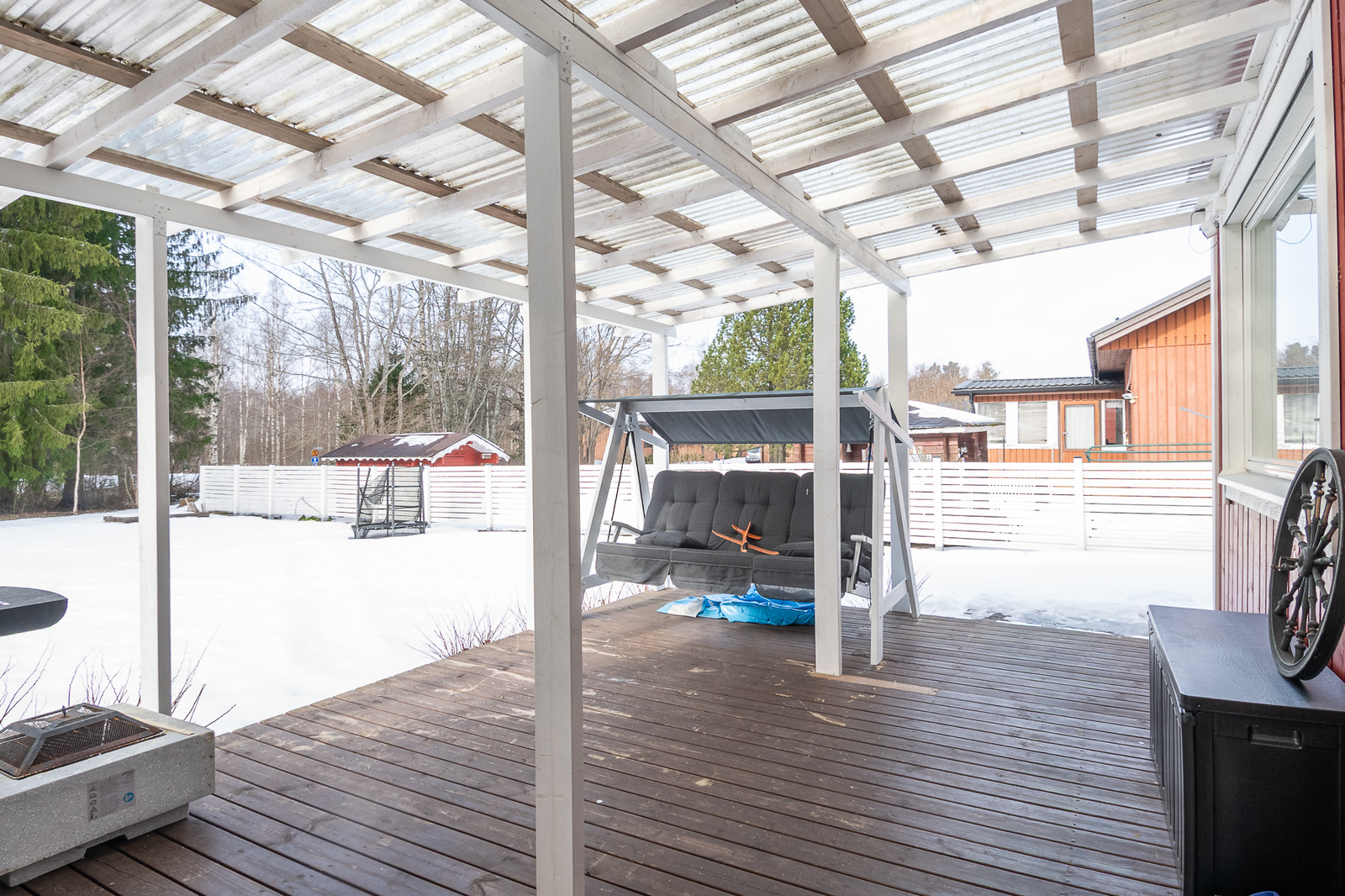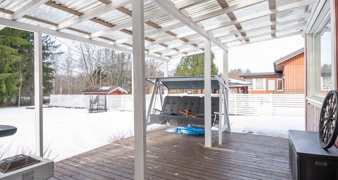 Huset har blivit mycket genomgående omskött och renoverat; bl.a. fönster, dörrar, rör, täckdiken och interiör har renoverats helt och hållet. Dessutom har tillförts mera boendekomfort genom att bygga terrasser på båda sidorna av huset och baksidans terrass har glasats in. Husets utsida har också nyligen målas och taket har granskats förra sommaren.