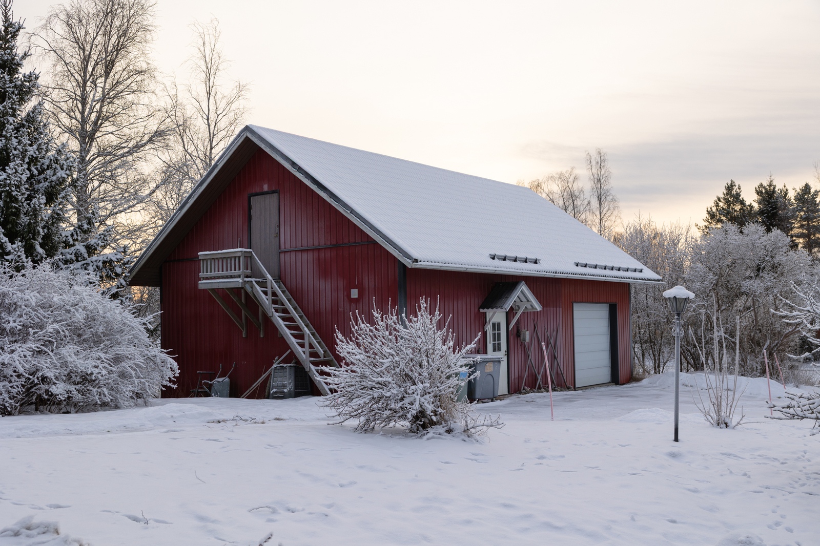 På gårdsområdet finns en separat byggnad som byggts år 1987. I byggnaden finns ett varmt garage samt ett utrymme som kan användas för många olika ändamål, t.ex. för hobbyverksamhet eller som arbetsutrymme - sammanlagt ungefär 85 m2.