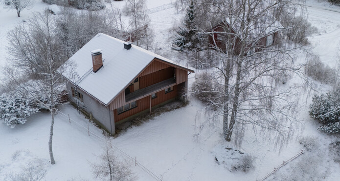 Denna fastighet befinner sig på en lugn, backig tomt varifrån en vacker landsbygdsutsikt öppnar sig. Helheten består av två byggnader och erbjuder sammanlagt 1878 m2 med eget lugn och utrymme.
