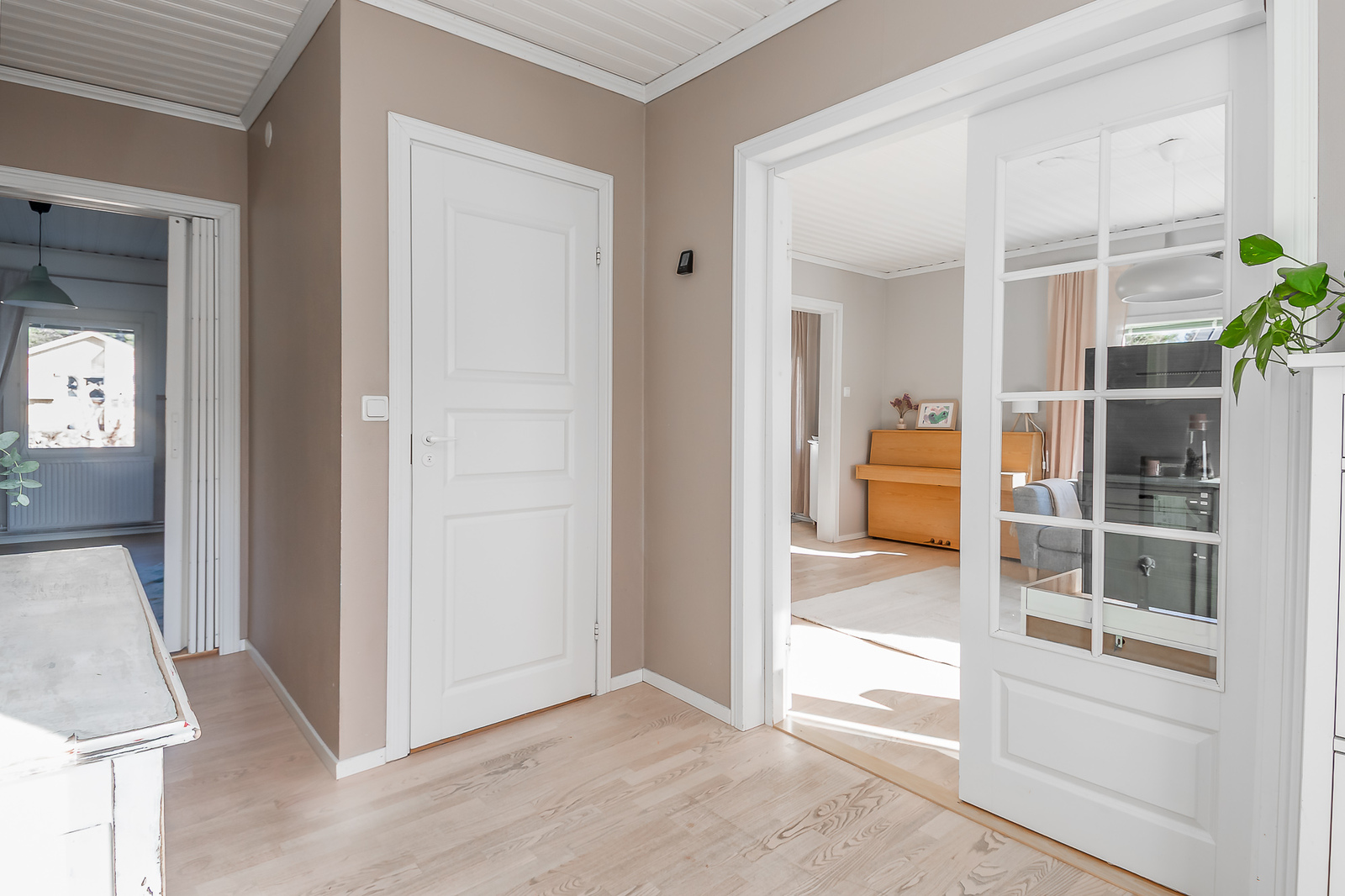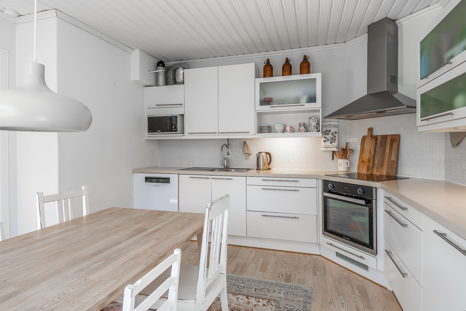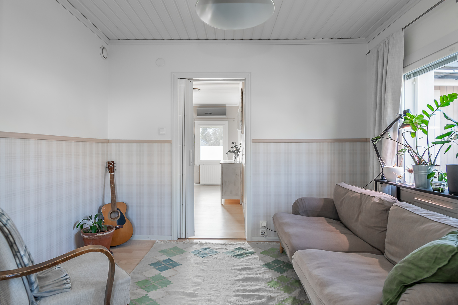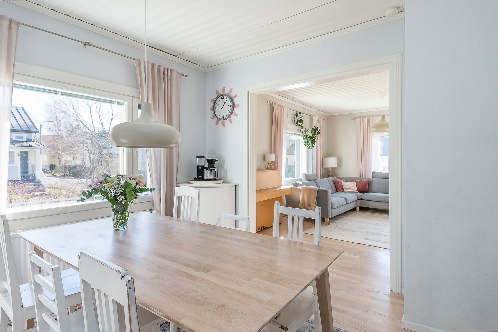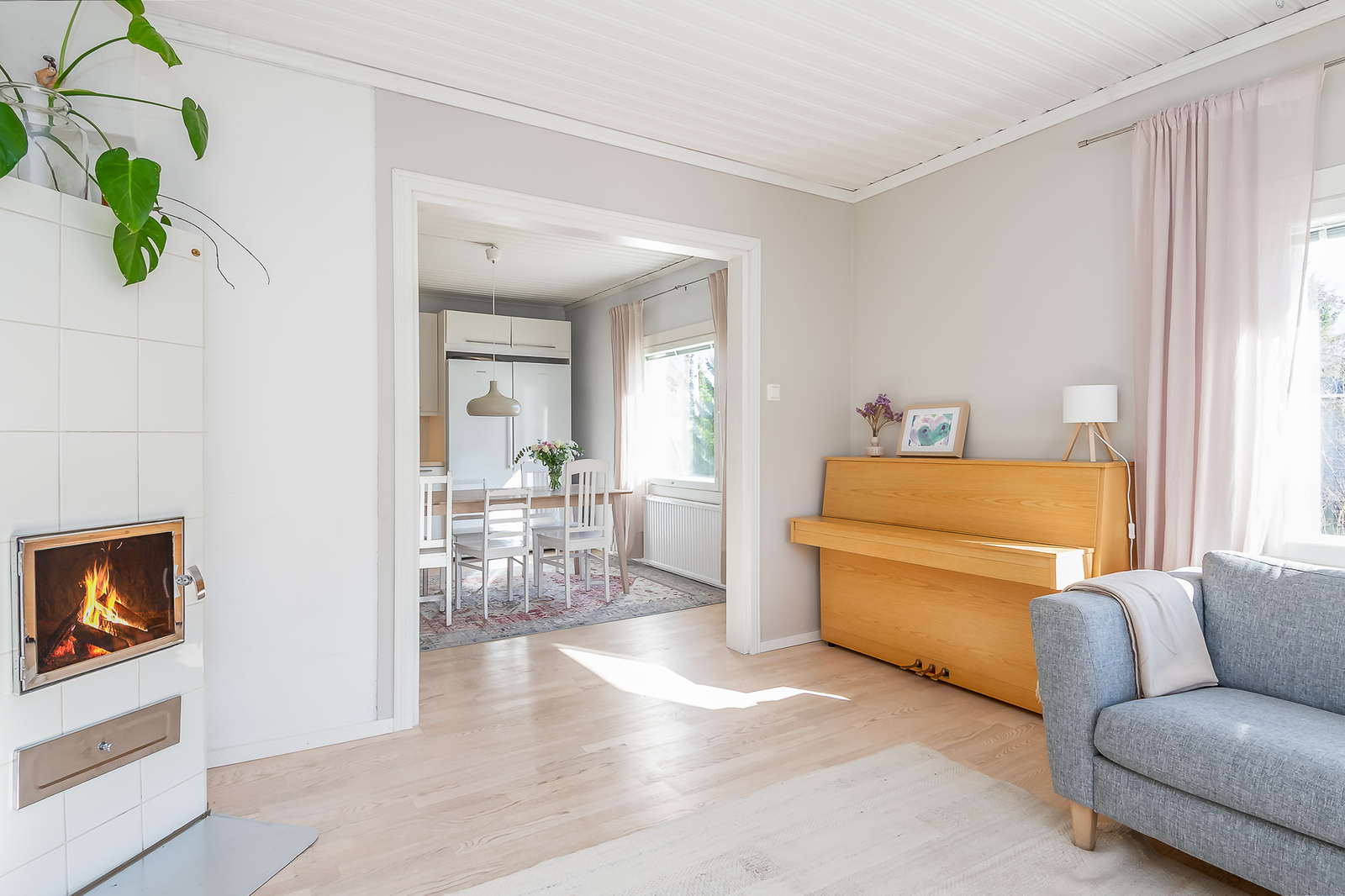 Astuessasi sisään, aistit heti idyllisen, mutta nykyaikaisen tunnelman. Vaaleat sävyt ja modernit, mutta vanhaa kunnioittaen remontoidut pinnat tuovat heti tunteen valoisasta kodista.