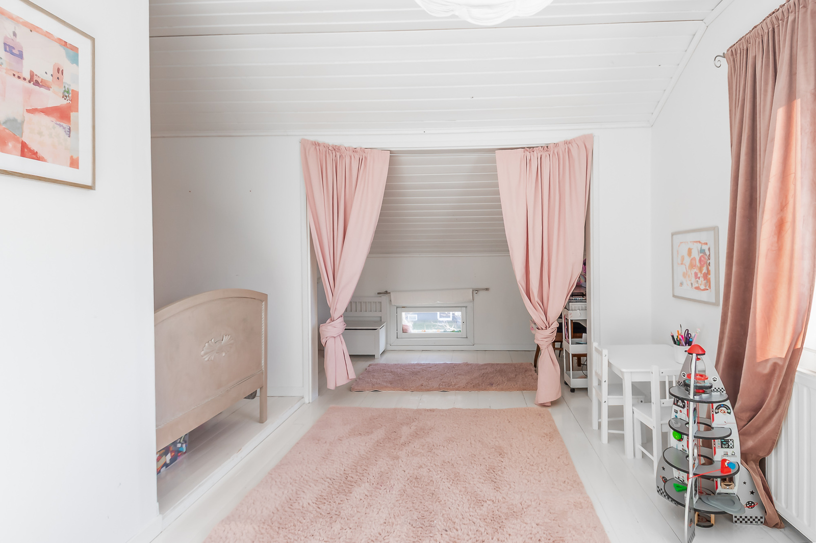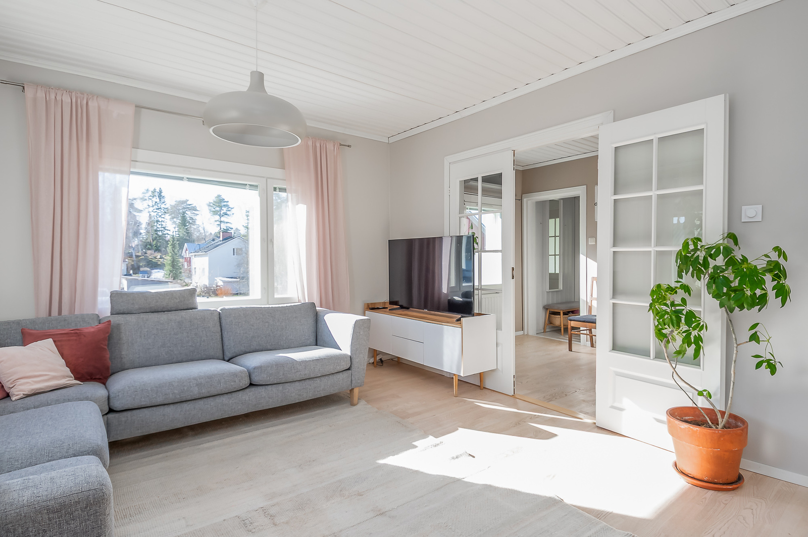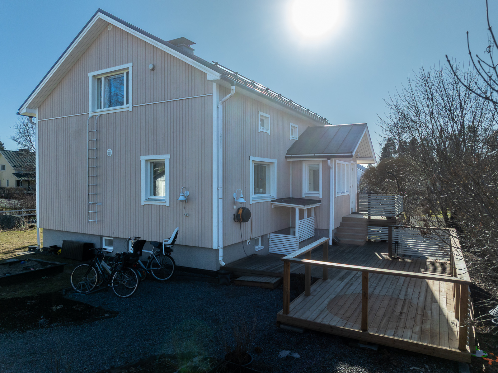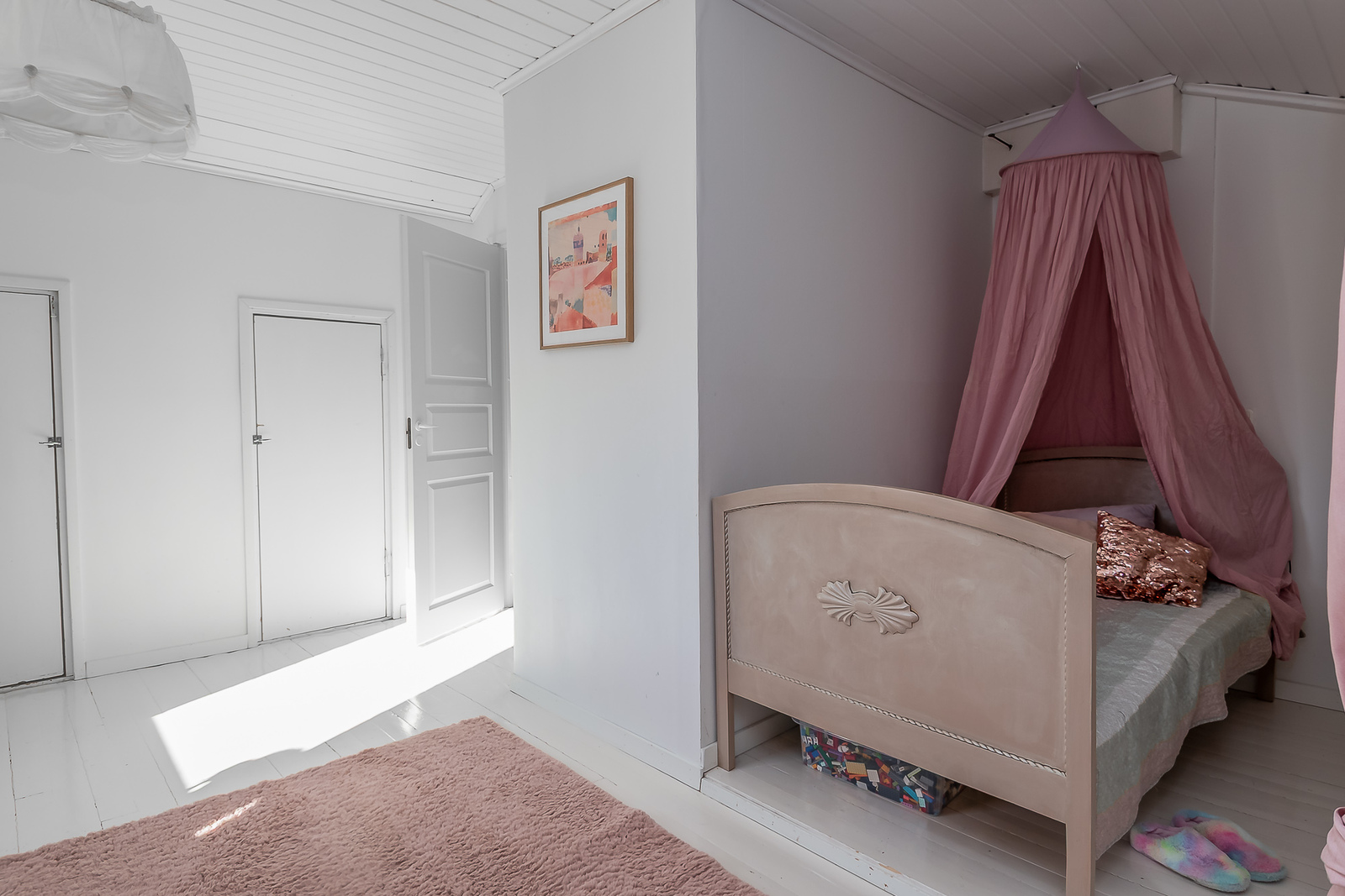 Astuessasi sisään, aistit heti idyllisen, mutta nykyaikaisen tunnelman. Vaaleat sävyt ja modernit, mutta vanhaa kunnioittaen remontoidut pinnat tuovat heti tunteen valoisasta kodista.