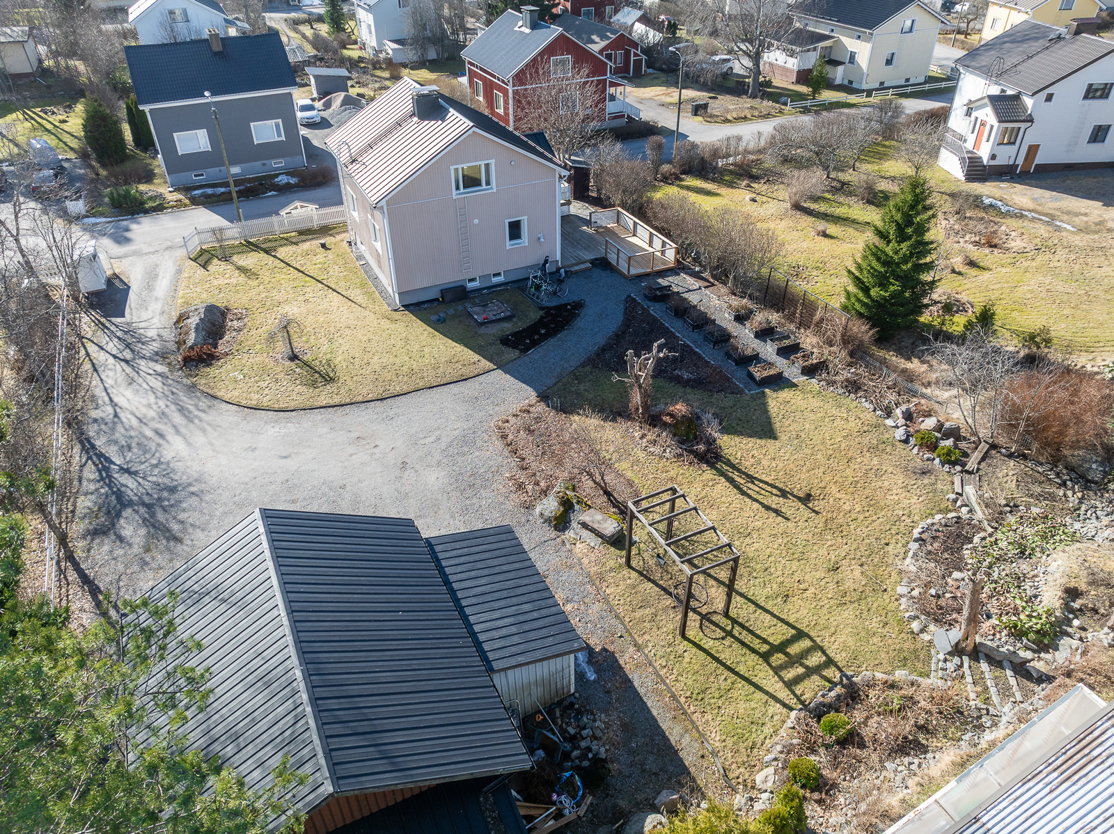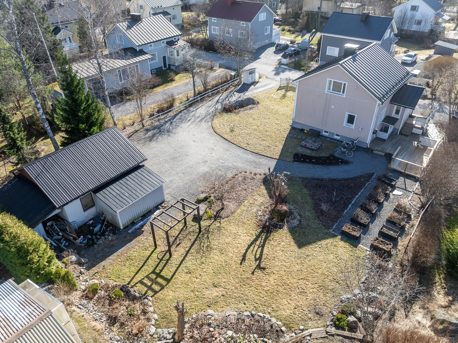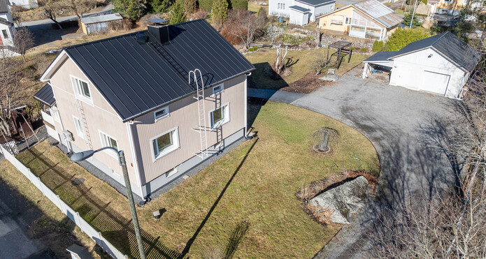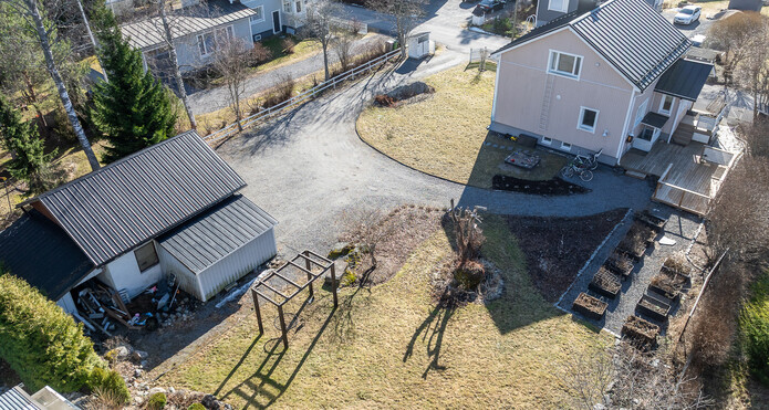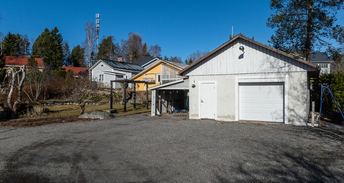 1200m2:n tontti on oma ja sillä sijaitsee myös yli 40m2:n harkkorakenteinen autotalli.