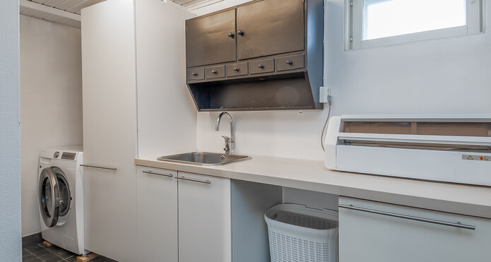 Säilytystilojen kuvausYläkerran matalissa osissa psljon säilytystilaa, lisäksi kiintokaapistoja ja kellaritilassa suuri kaapisto Ja varastotilaa.