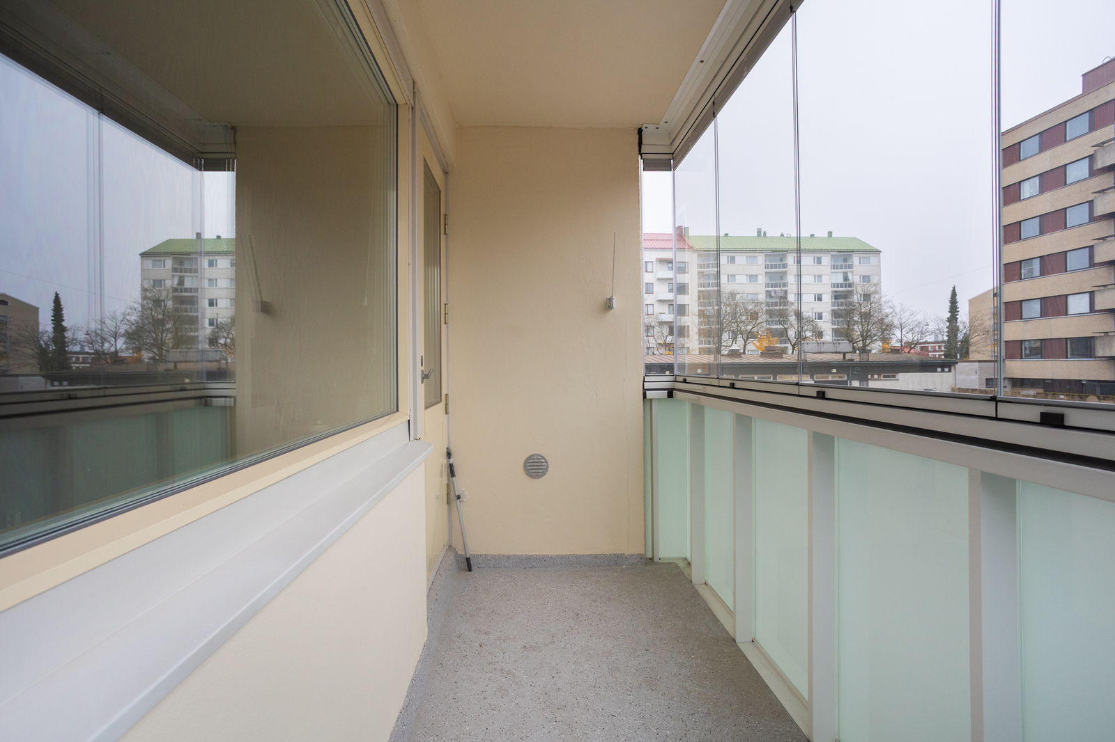Parvekkeen kuvausParveketyyppi: lasitettu, sisäänvedetty