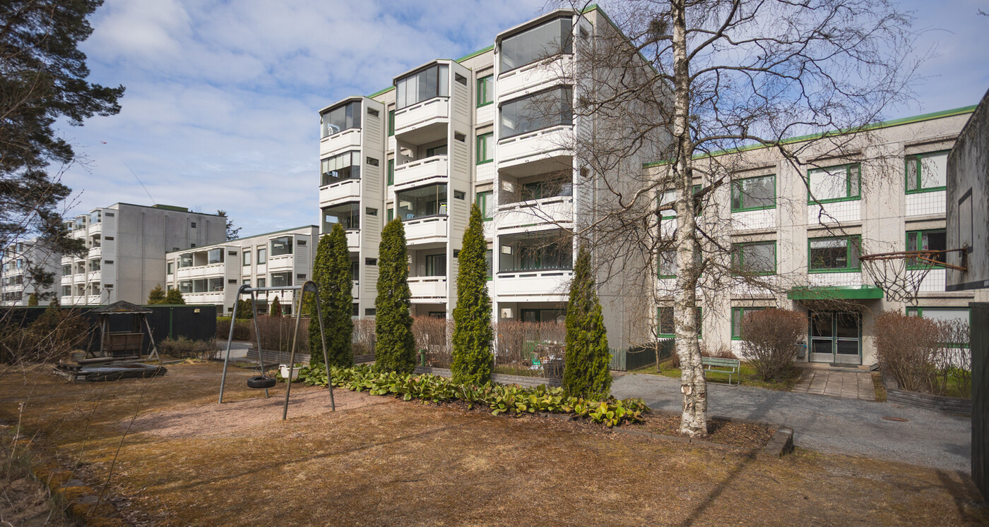 Huoneet ovat tilavat sekä valoisat ja näkymät ovat niin Vikingan omakotialueelle kuin kuntoradalle, joka sijaitsee ihan taloyhtiön tontin takana.