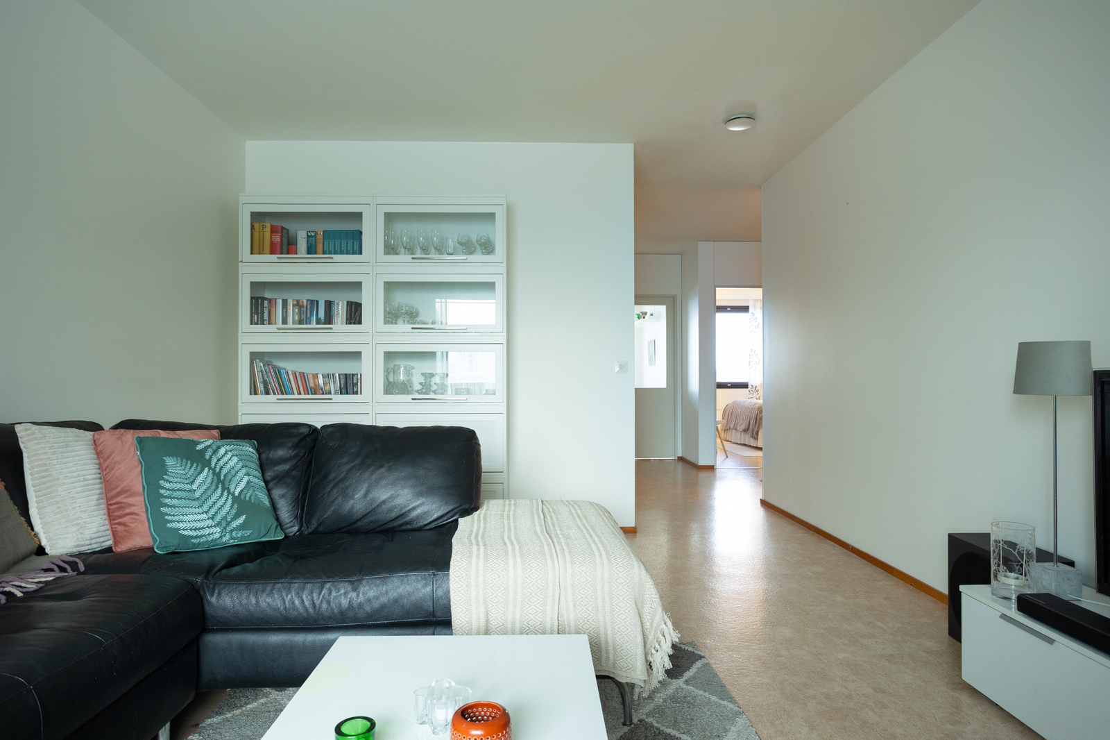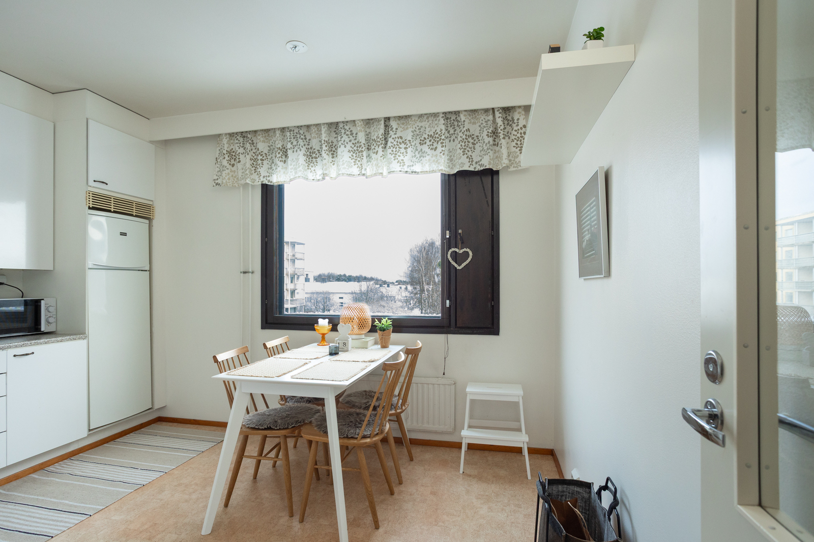 Olohuoneesta kulku lasitetulle parvekkeelle. -