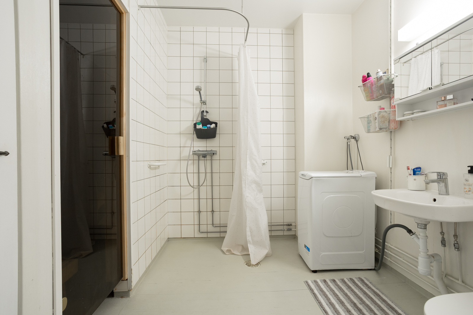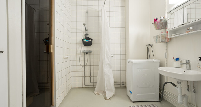 Varusteet: pesukoneliitäntä, suihku, peilikaappi -