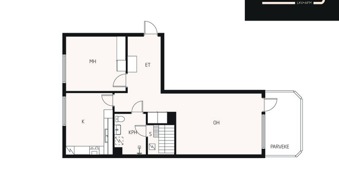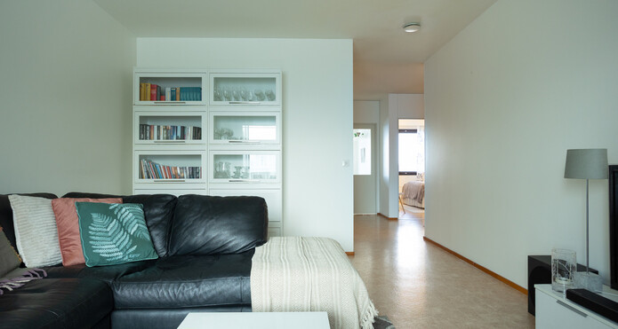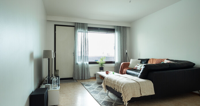 Huoneisto on läpitalon asunto, jossa on reilunkokoiset huoneet.