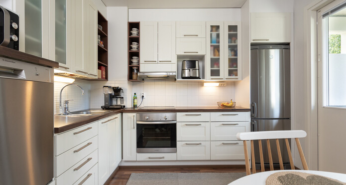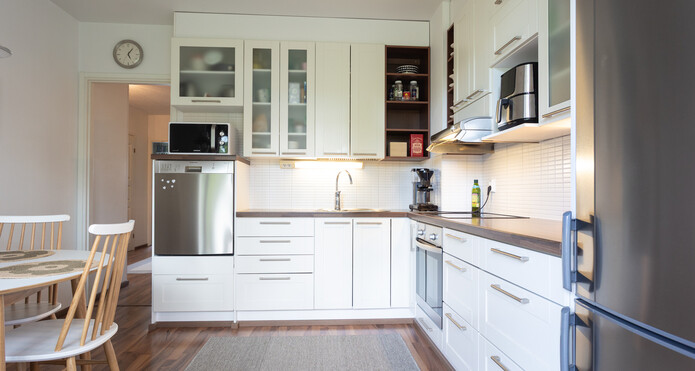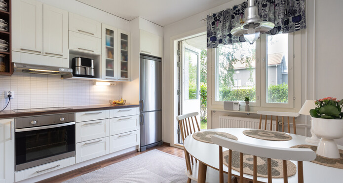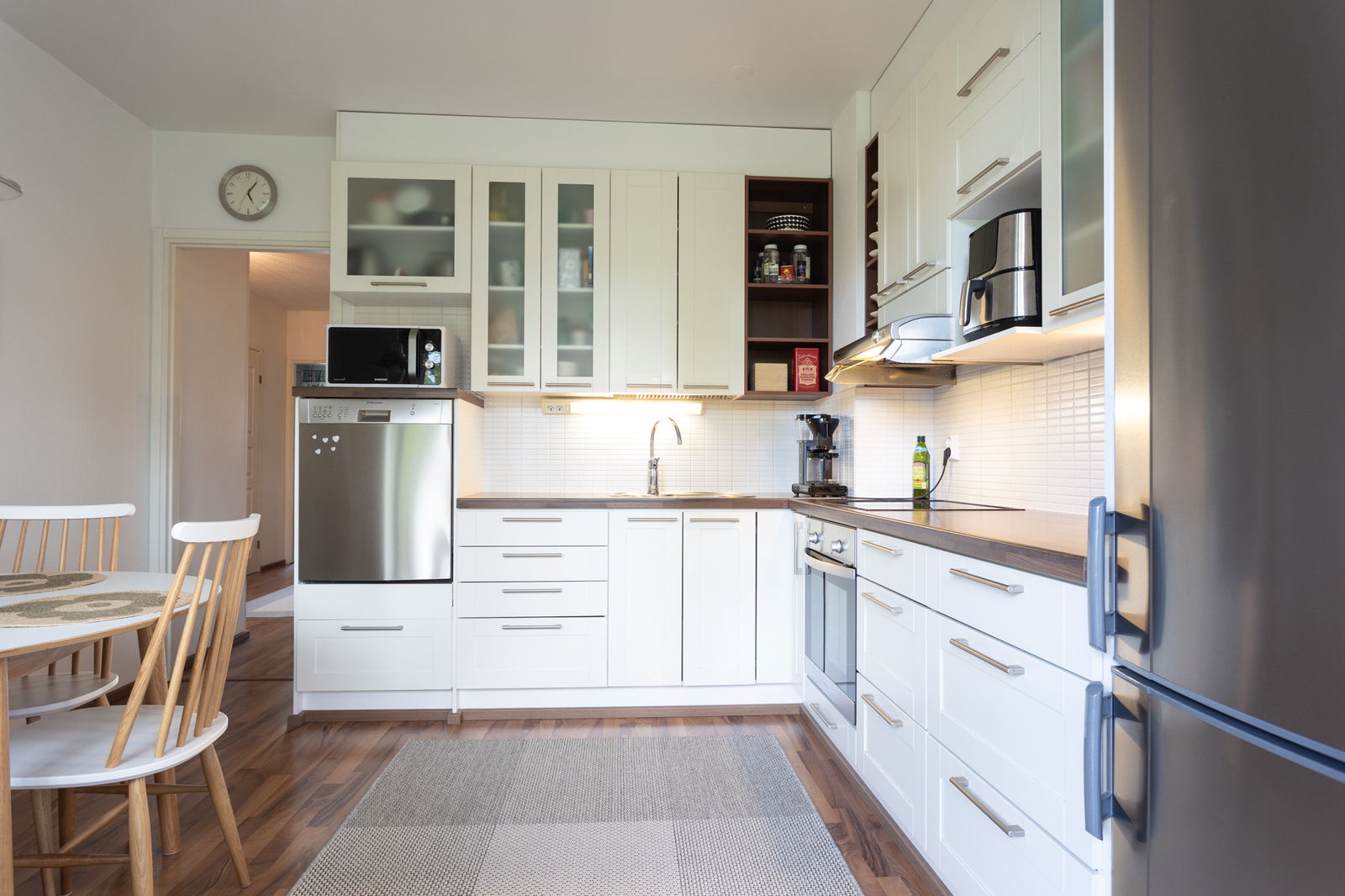 Keittiön kuvausLattiamateriaalit: laminaatti