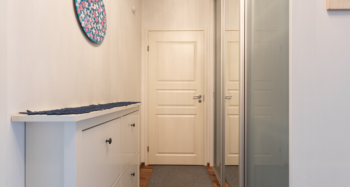 Tilojen kuvausEteisessä lattia laminaatti ja seinät maalattu. Eteisessä liukuovikaapisto.