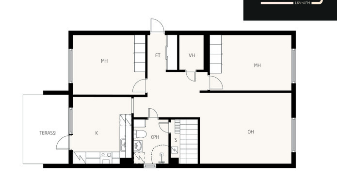 NäkymätKeittiöstä on käynti terassipihalle joka luoteeseen.