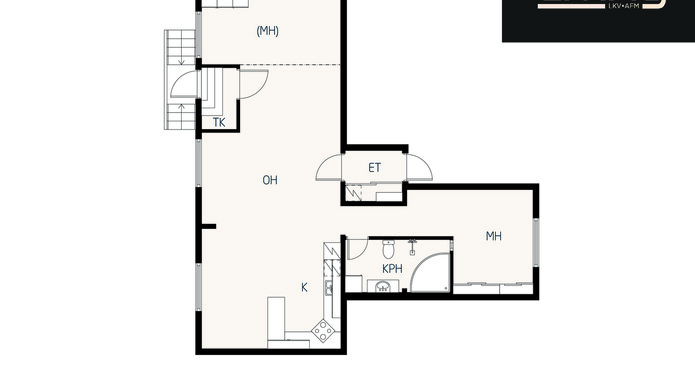 Huoneistoselitelmä3h + avokeittiö + kph + khh/et