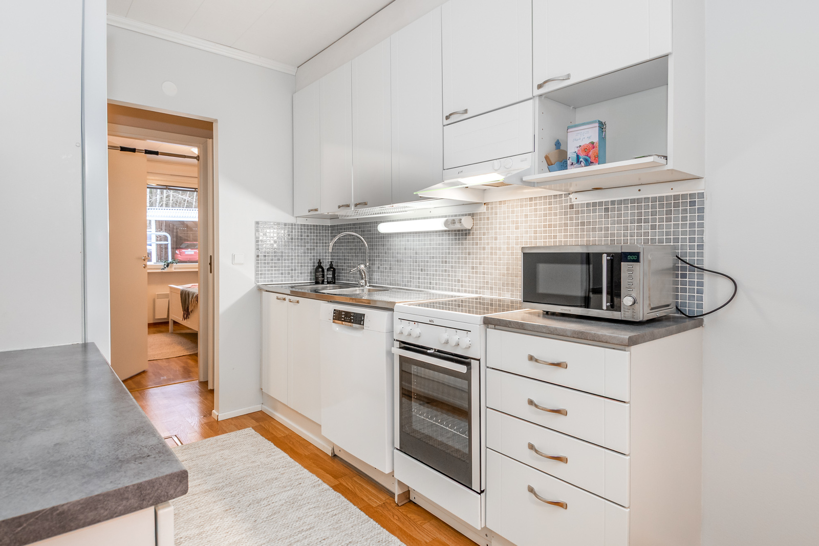 Tähän hyvin hoidettuun taloyhtiöön on juuri kytketty valokuitu. Jokaiseen asuntoon kuuluu lisäksi varastotila ja autokatospaikka.