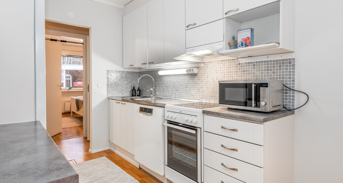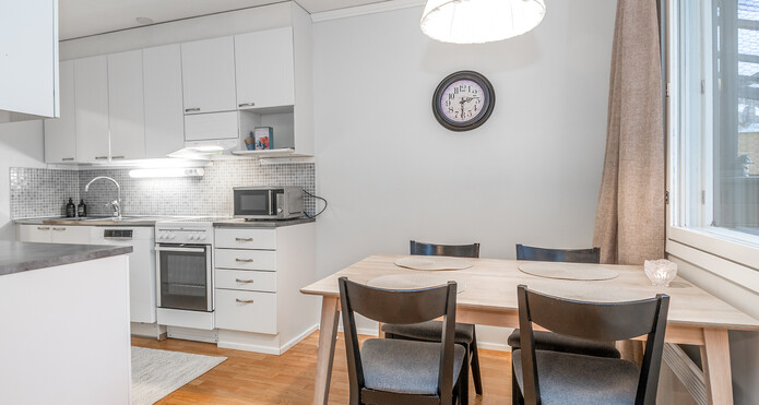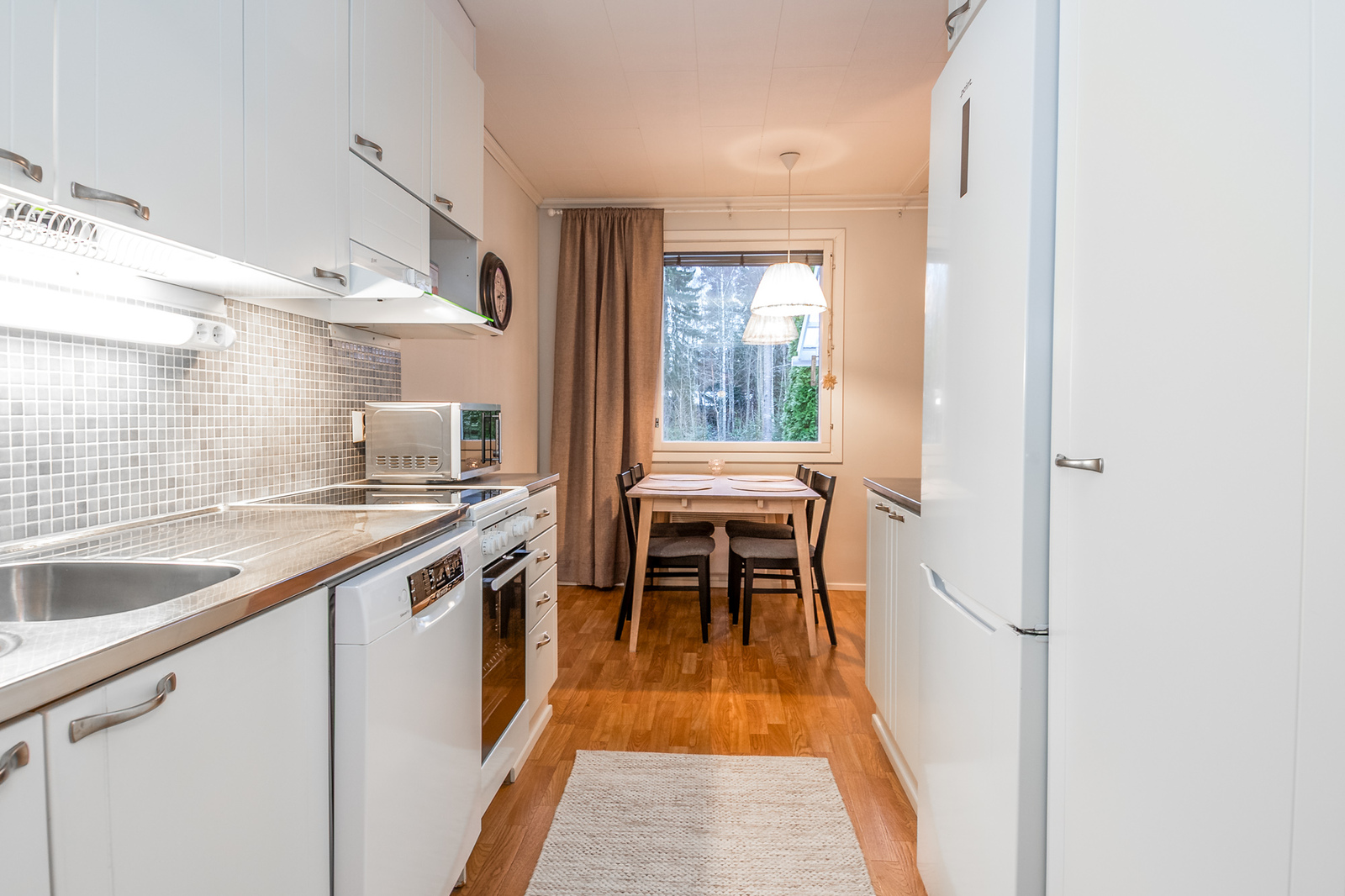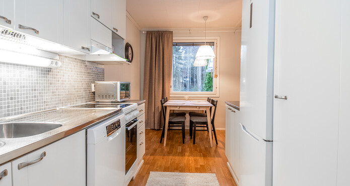 Kiva, osittain olohuoneen avoin keittiö. Keittiötä remontoitu n. 10v sitten. Kodinkoneita uusittu viime vuosien aikana. -